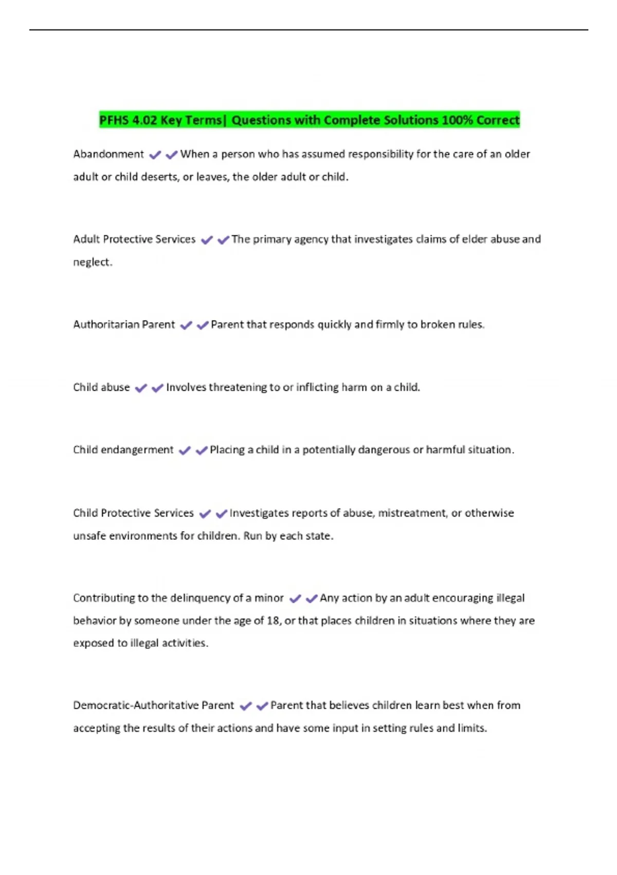 PFHS 4.02 Key Terms| Questions with Complete Solutions 100% Correct