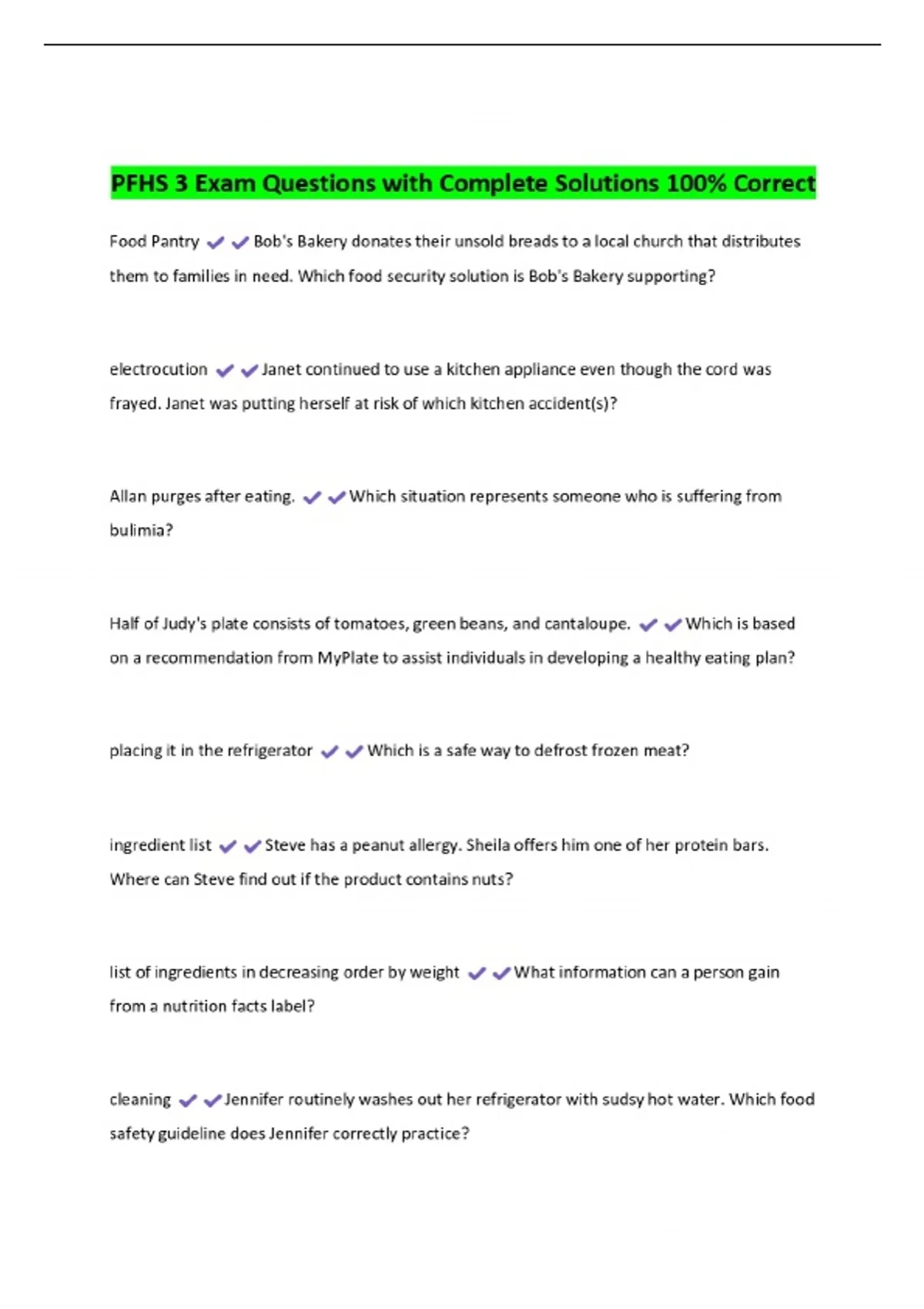PFHS 3 Exam Questions with Complete Solutions 100% Correct