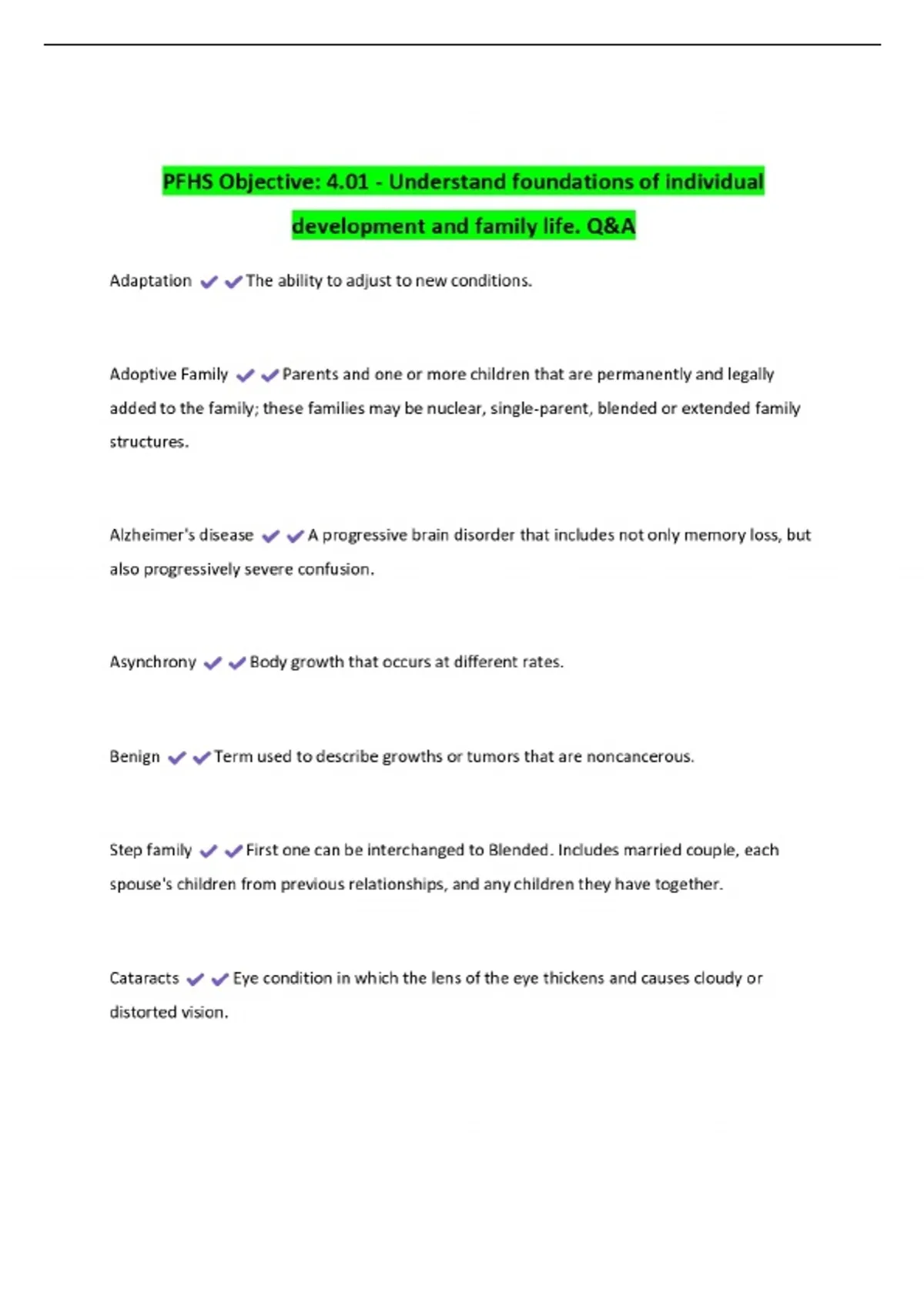 PFHS Objective: 4.01 - Understand foundations of individual development and family life. Q&A