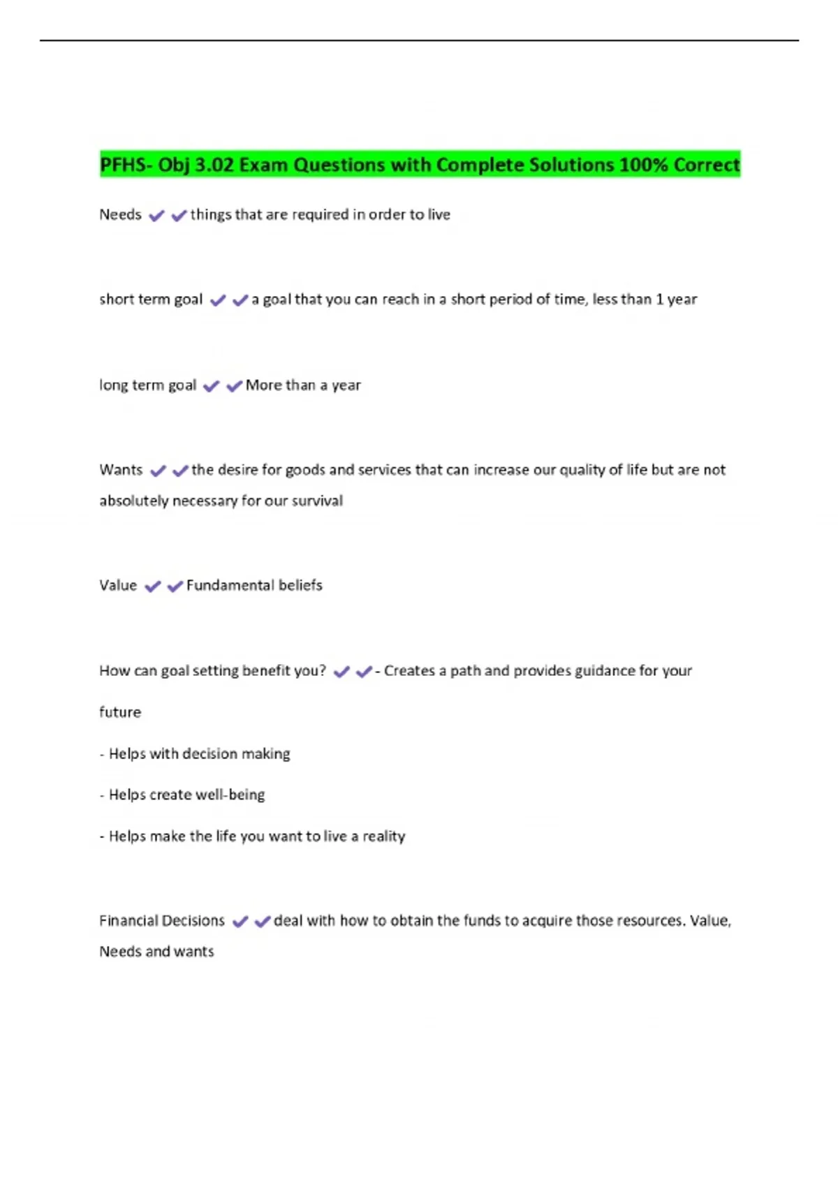 PFHS- Obj 3.02 Exam Questions with Complete Solutions 100% Correct
