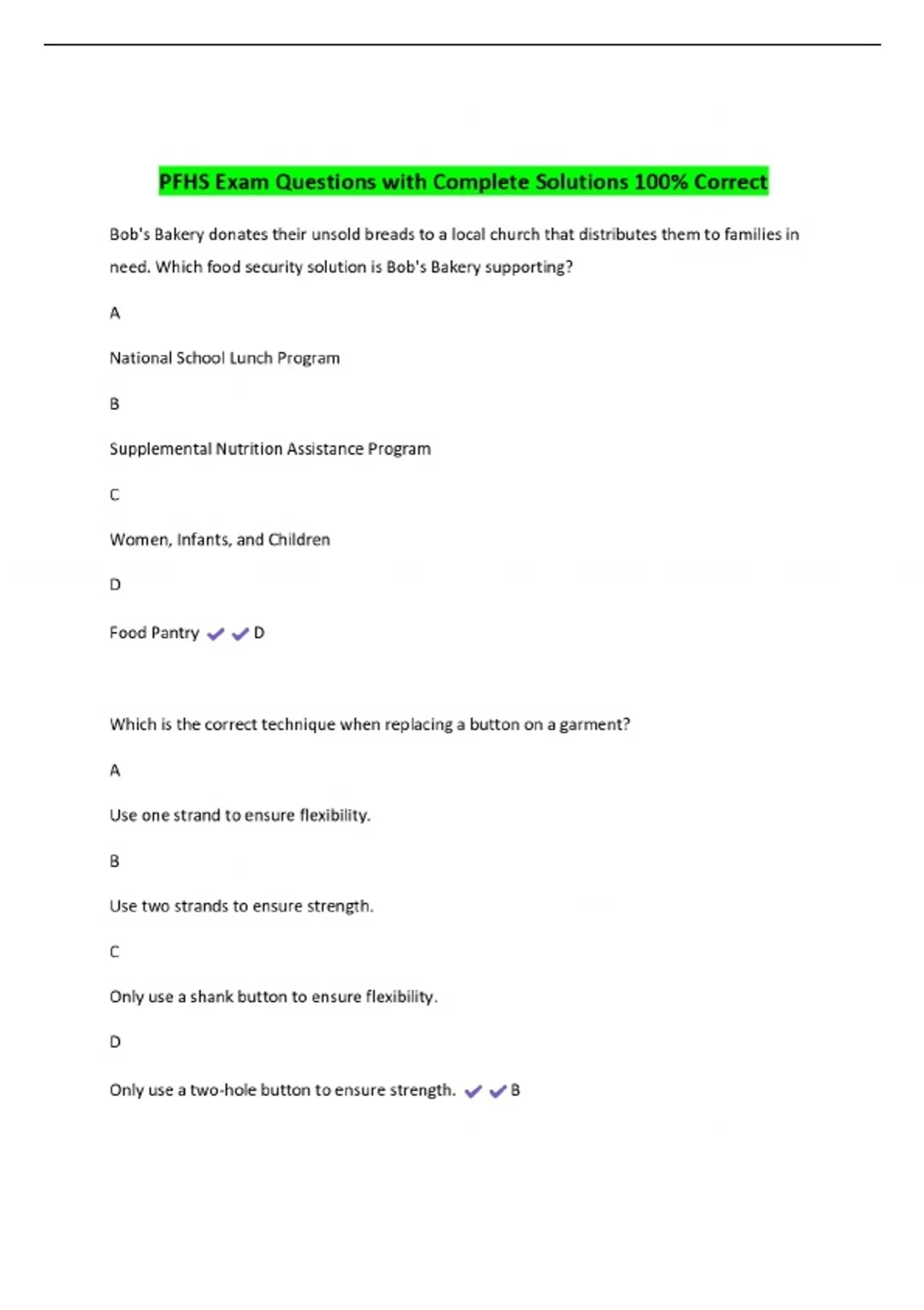 PFHS Exam Questions with Complete Solutions 100% Correct