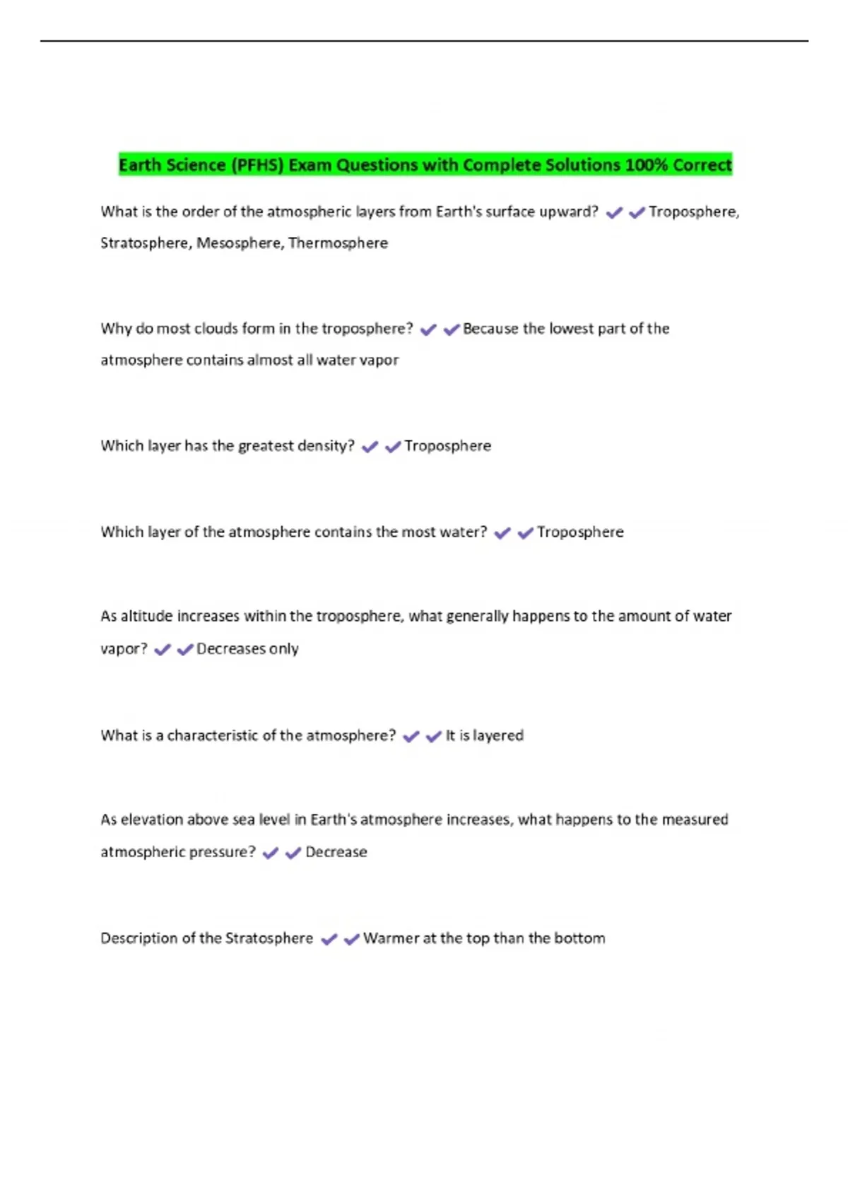 Earth Science (PFHS) Exam Questions with Complete Solutions 100% Correct