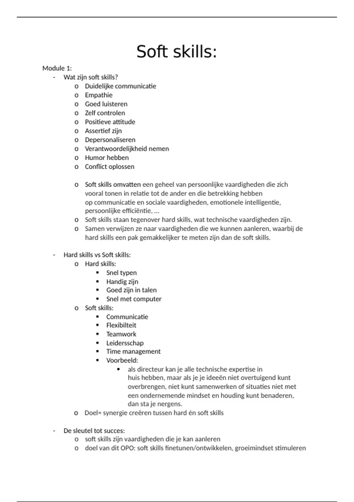 Het is een samenvatting van soft skills. Het is een vak van het eerste jaar KMO & Ondernemen.