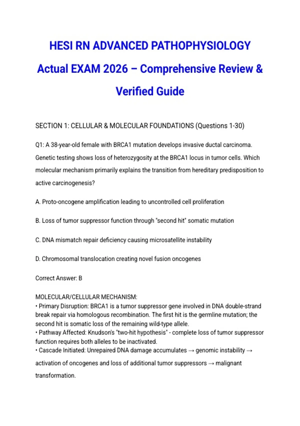• Primary Disruption: BRCA1 is a tumor suppressor gene involved in DNA double-strand