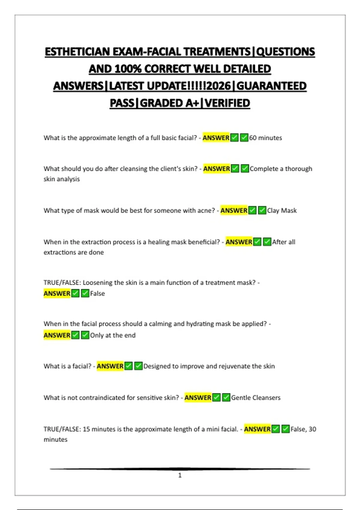 TRUE/FALSE: 15 minutes is the approximate length of a mini facial. - ANSWER False, 30