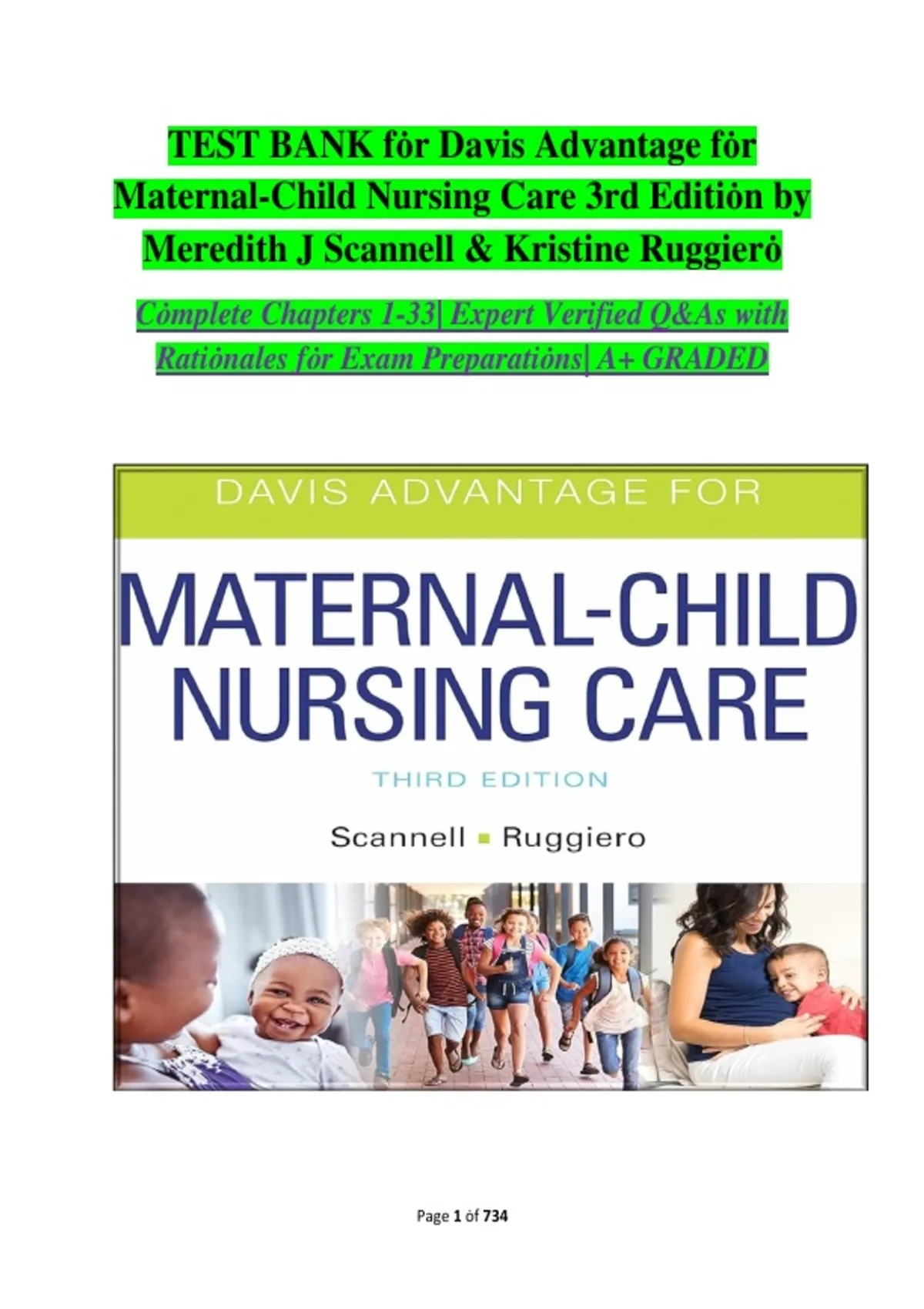Test Bank for Davis Advantage for Maternal‑Child Nursing Care, 3rd Edition – Complete Questions & Answers (Scannell & Ruggiero) | ISBN 9781719640985 | 2026
