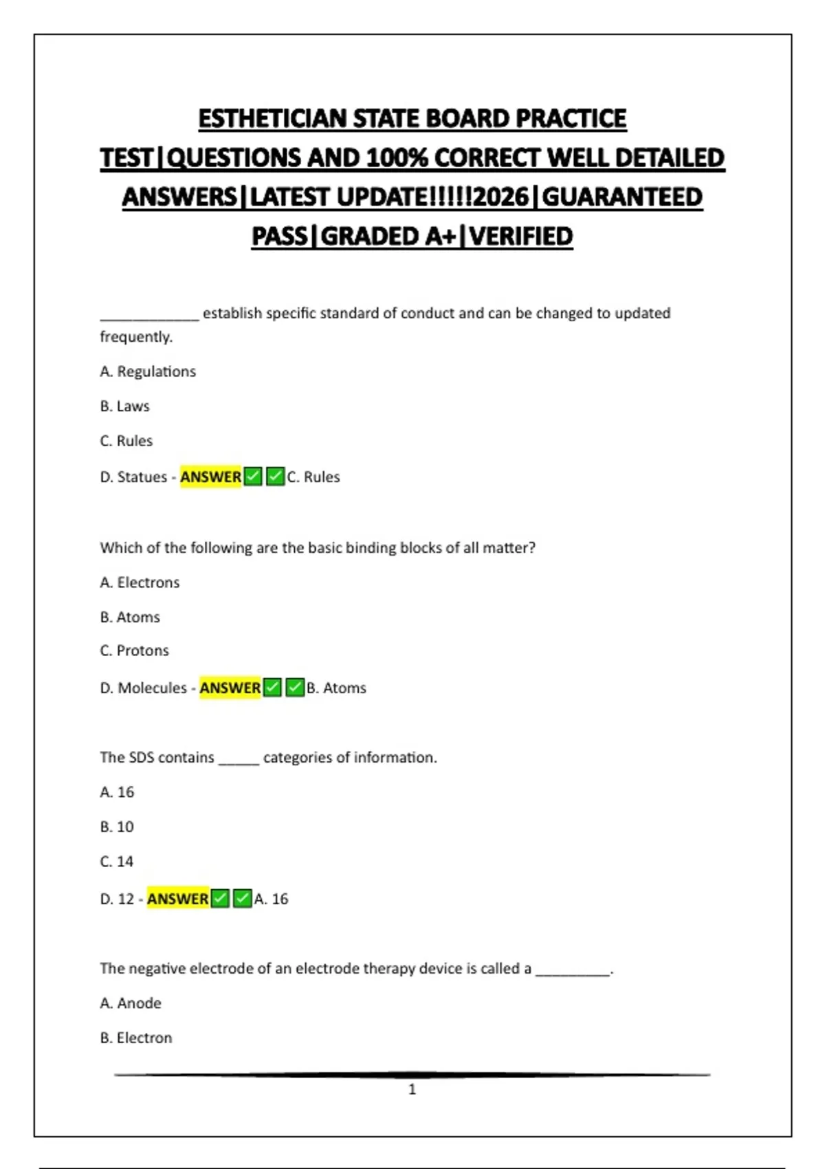 ESTHETICIAN STATE BOARD PRACTICE TEST|QUESTIONS AND 100% CORRECT WELL DETAILED ANSWERS|LATEST UPDATE!!!!!2026|GUARANTEED PASS|GRADED A+|VERIFIED