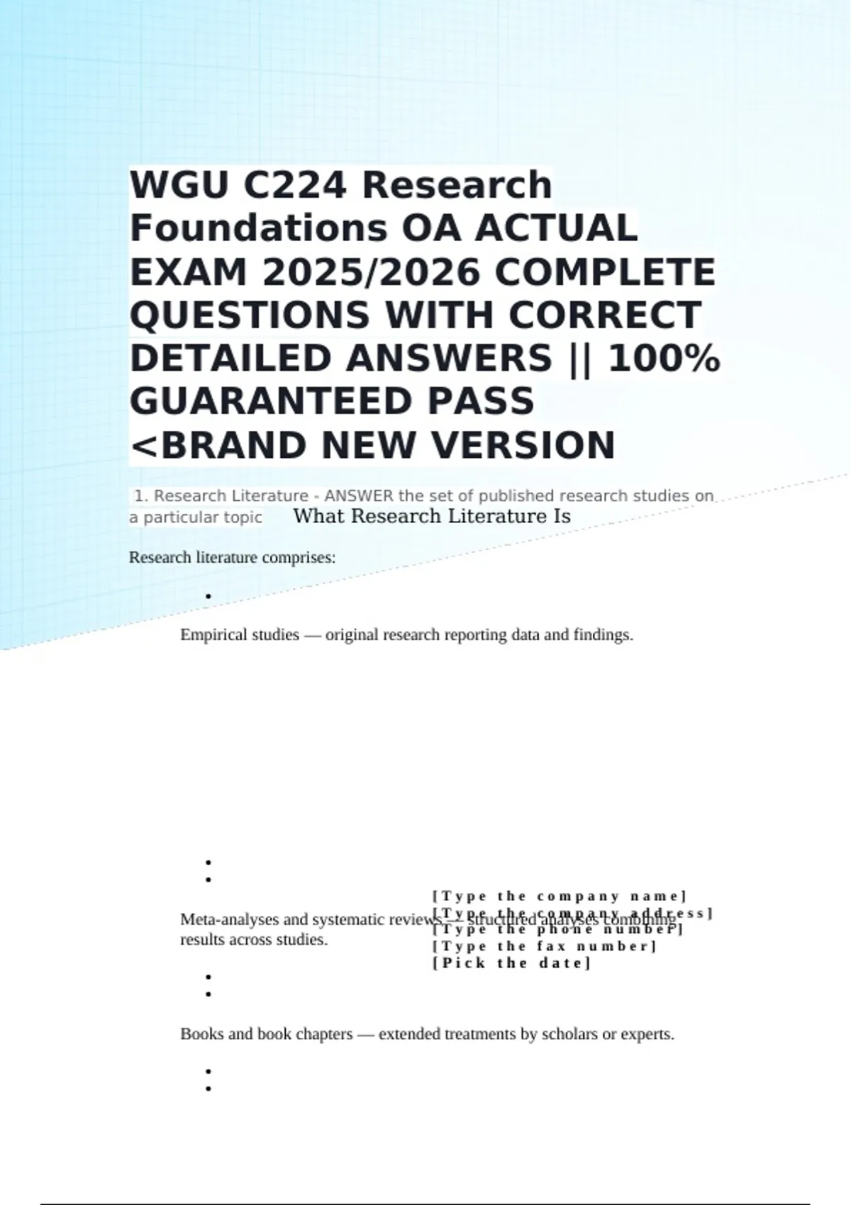 WGU C224 Research Foundations OA ACTUAL EXAM 2025/2026 COMPLETE QUESTIONS WITH CORRECT DETAILED ANSWERS || 100% GUARANTEED PASS <BRAND NEW VERSION