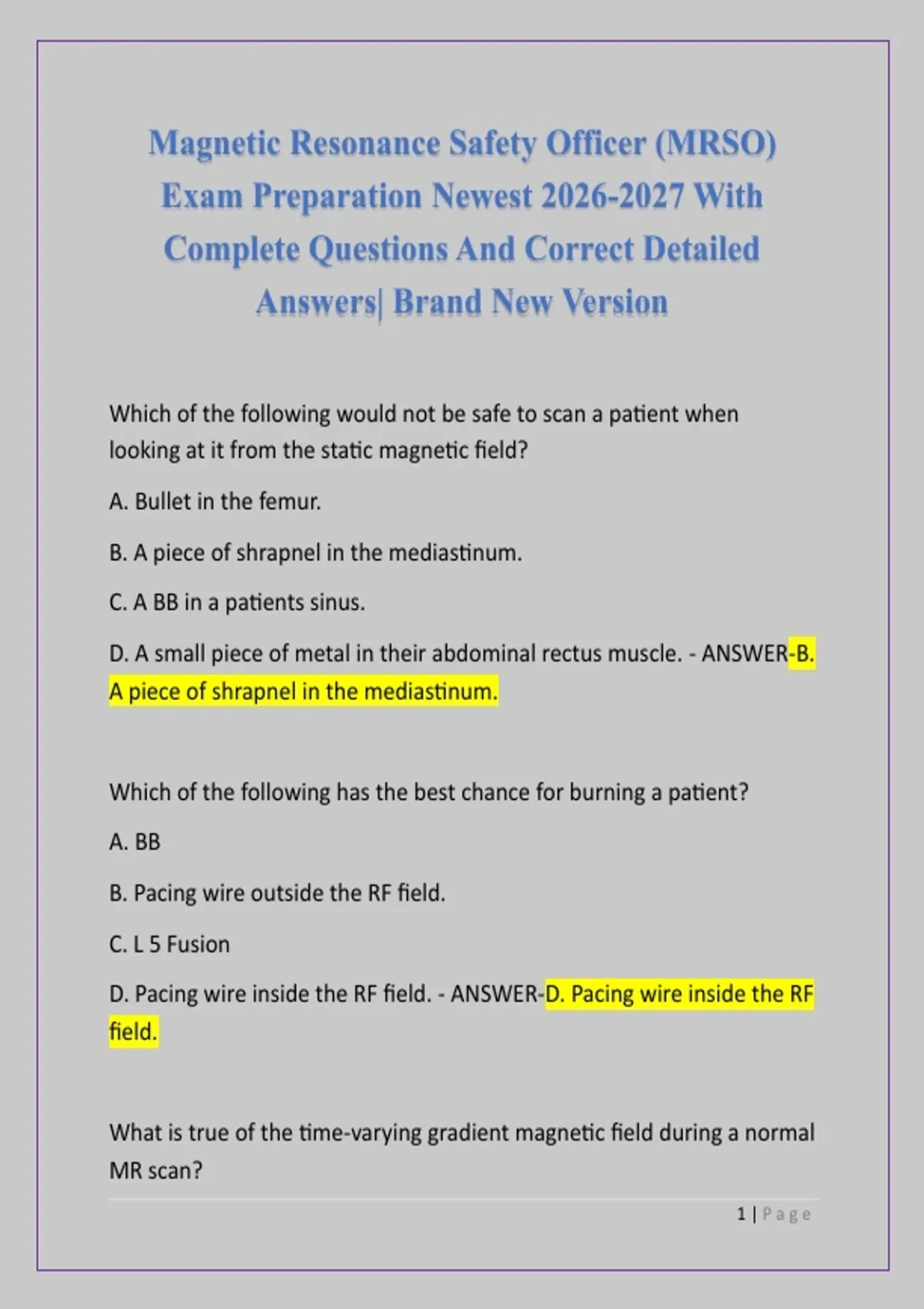 D. A stainless steel breast clip. - ANSWER-C. A steel aneurysm clip.