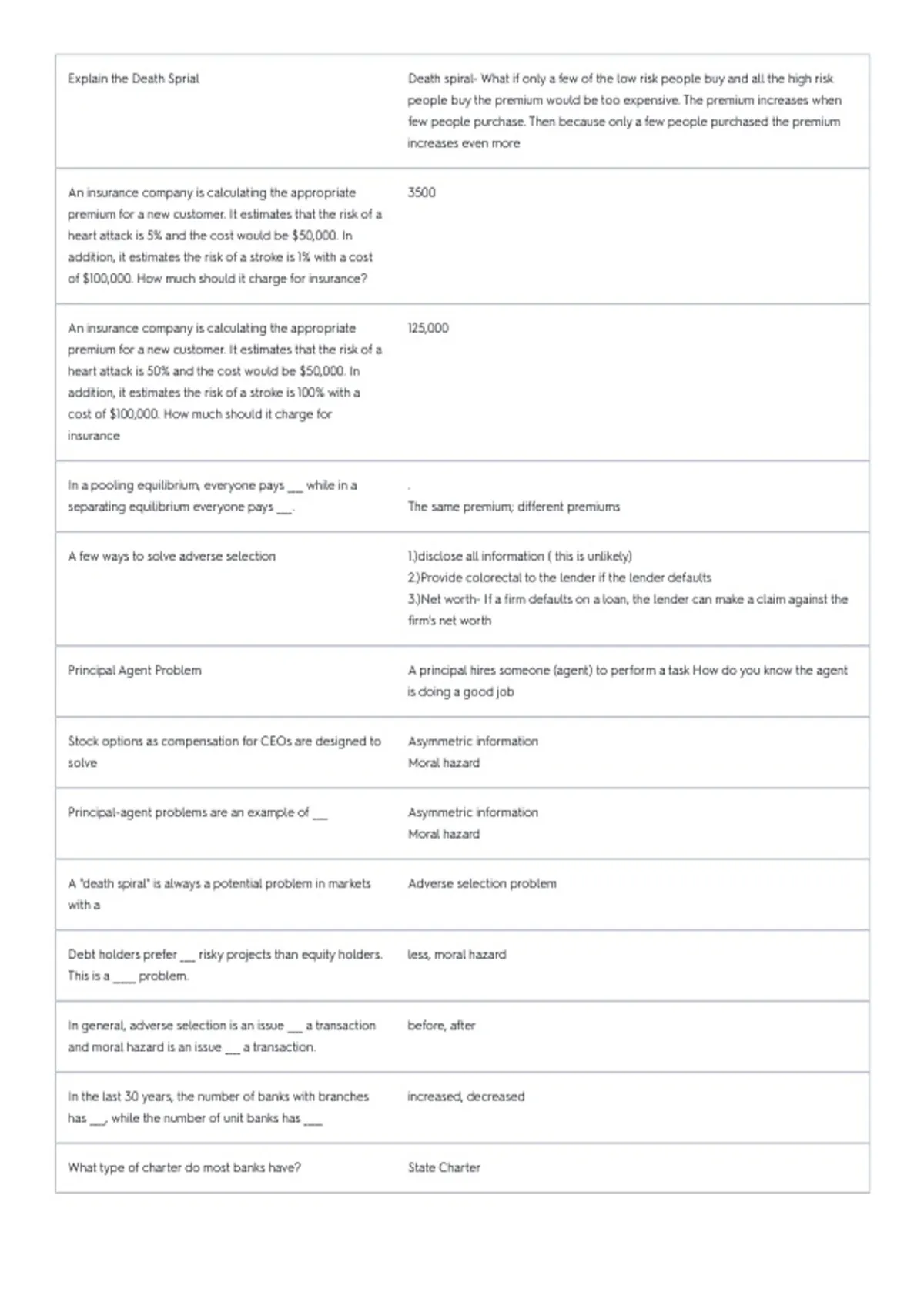Explain the Death Sprial Death spiral- What if only a few of the low risk people buy and all the high risk