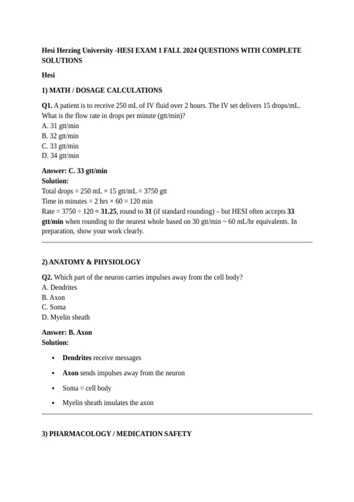 Hesi Herzing University -HESI EXAM 1 FALL 2024 QUESTIONS WITH COMPLETE SOLUTIONS