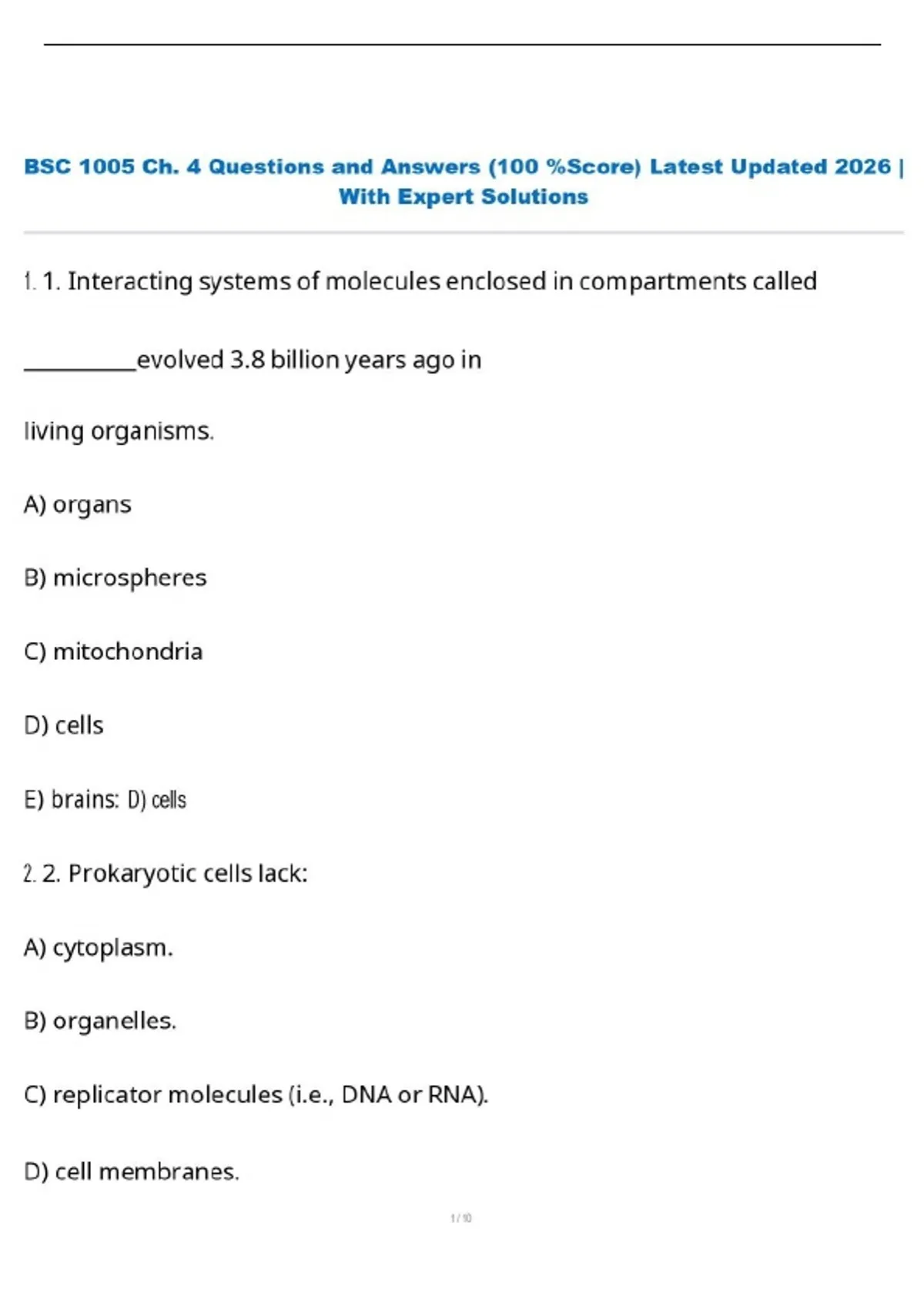 BSC 1005 Ch. 4 Questions and Answers (100 %Score) Latest Updated 2026 | With Expert Solutions