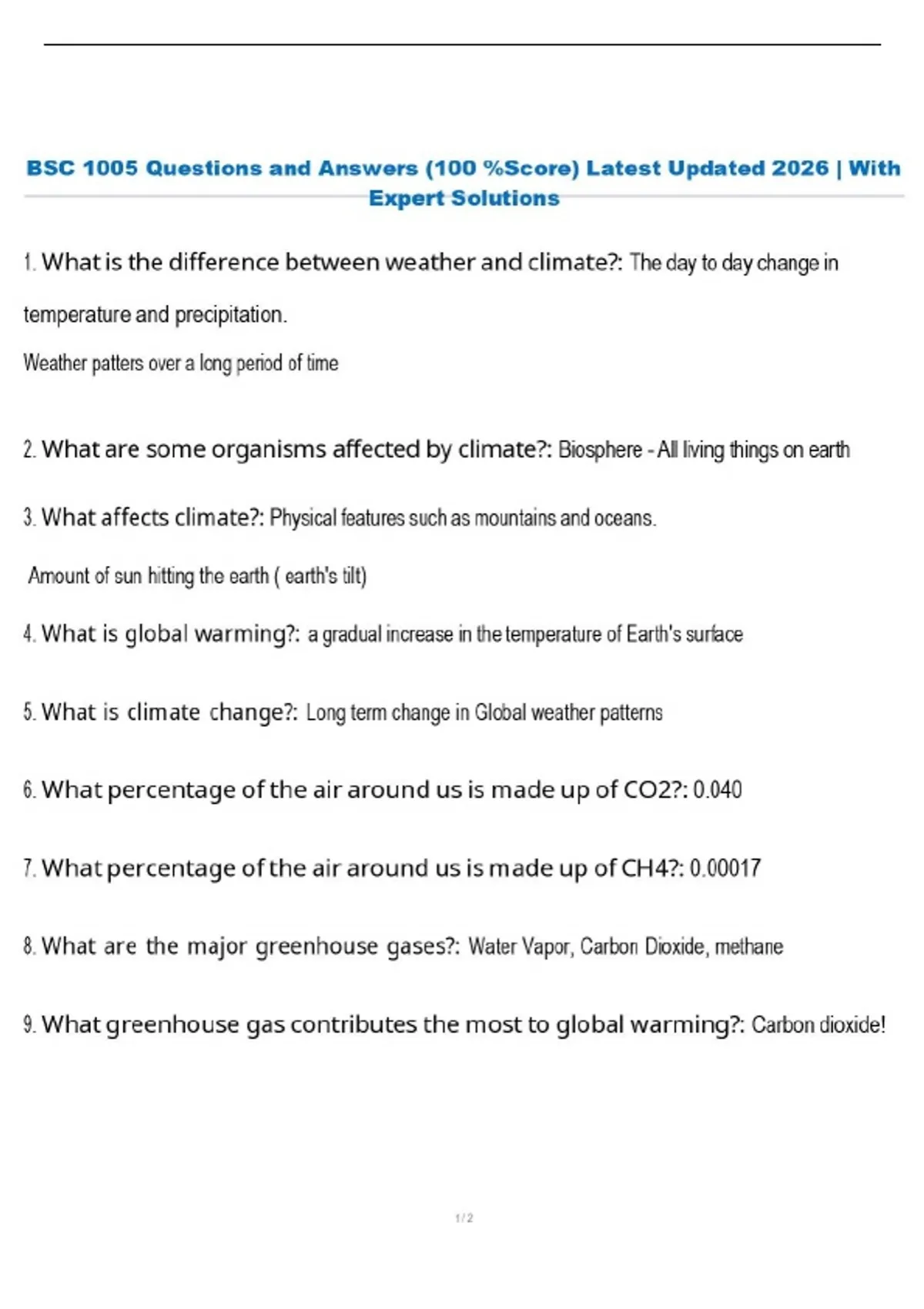 BSC 1005 Questions and Answers (100 %Score) Latest Updated 2026 | With Expert Solutions