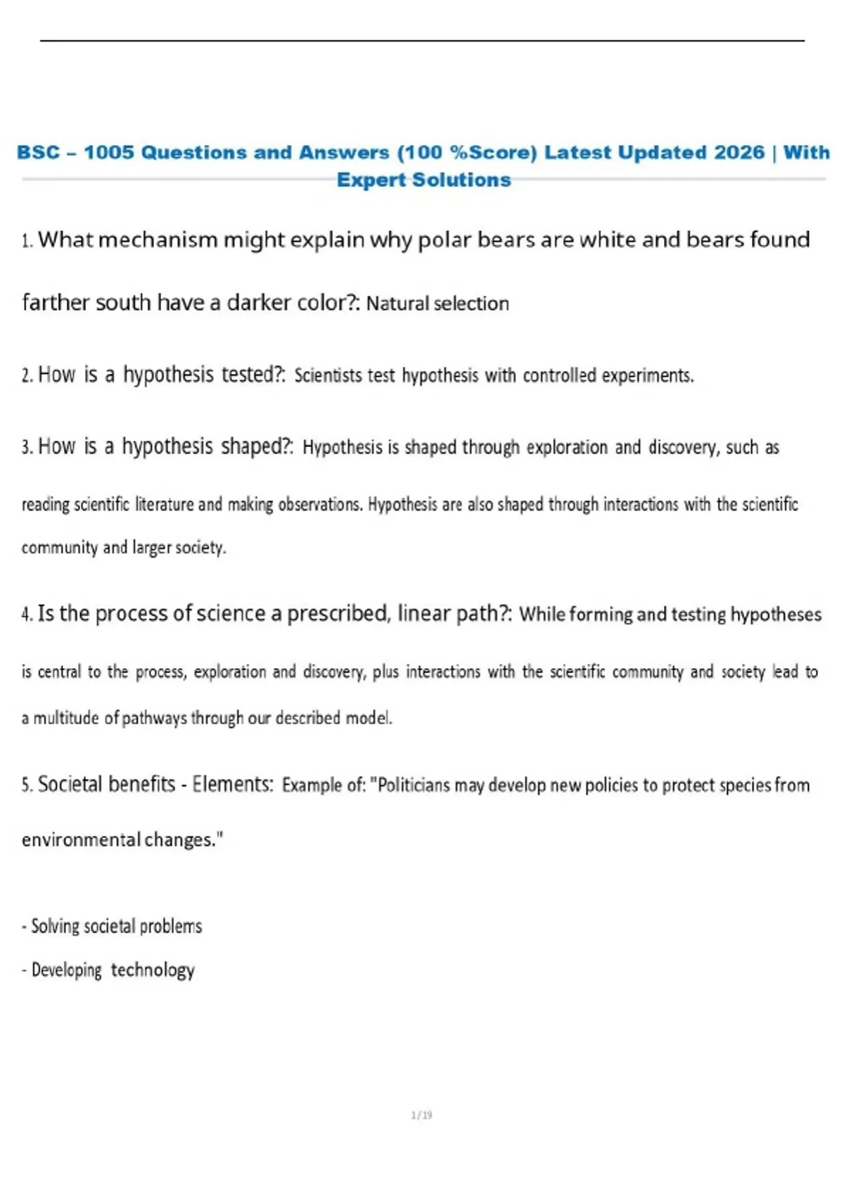 BSC – 1005 Questions and Answers (100 %Score) Latest Updated 2026 | With Expert Solutions