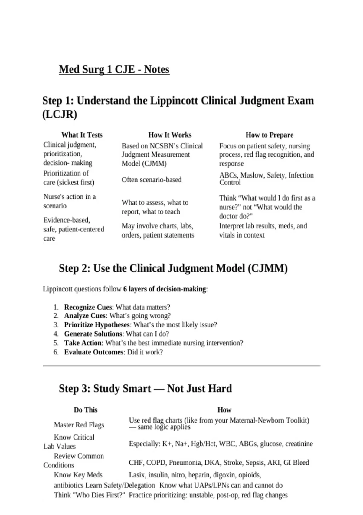 Includes Red Flags, Interventions, Meds, Labs, CJMM Thinking (Cue → Action →