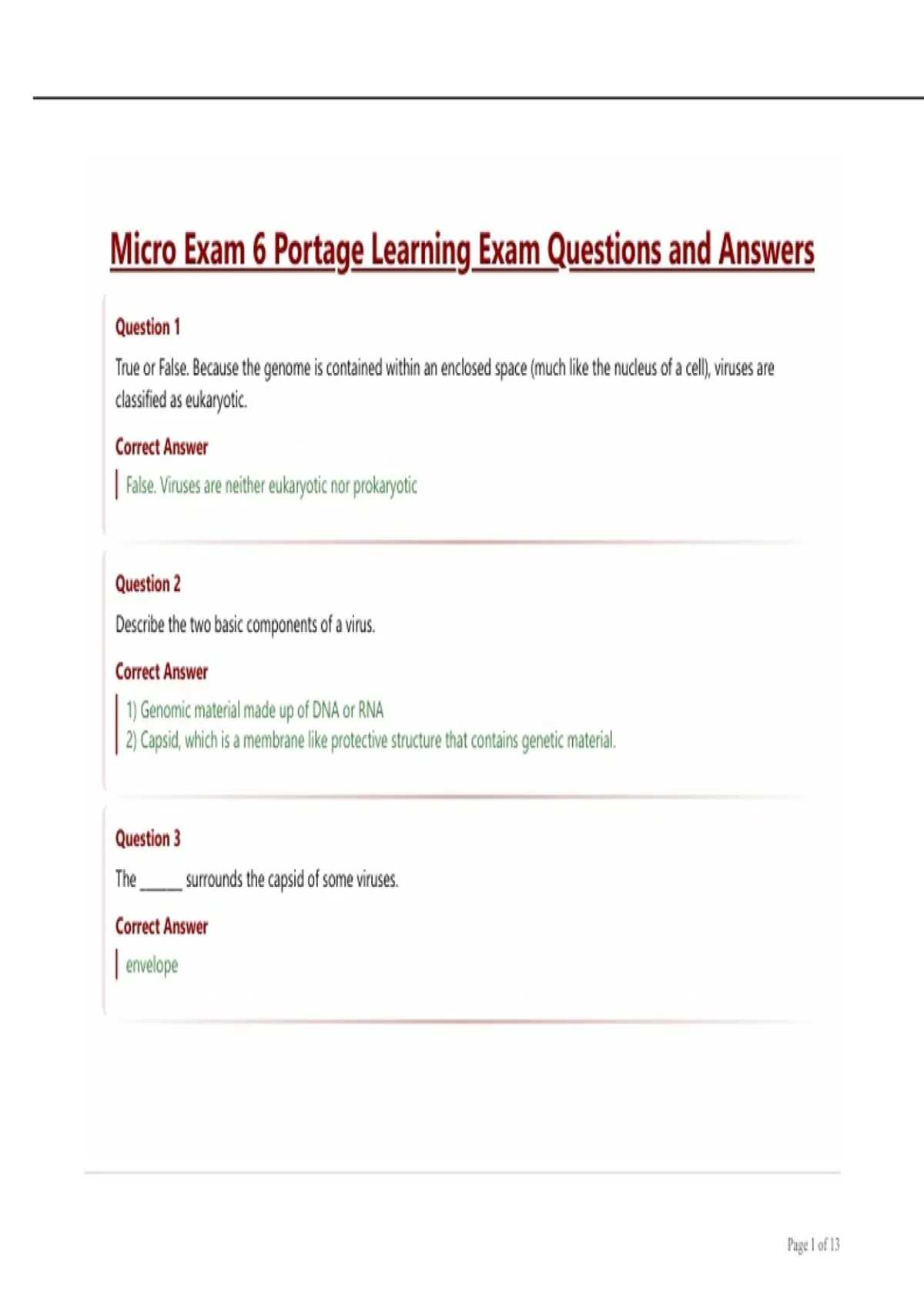Micro Exam 6 Portage Learning Exam Questions and Answers.