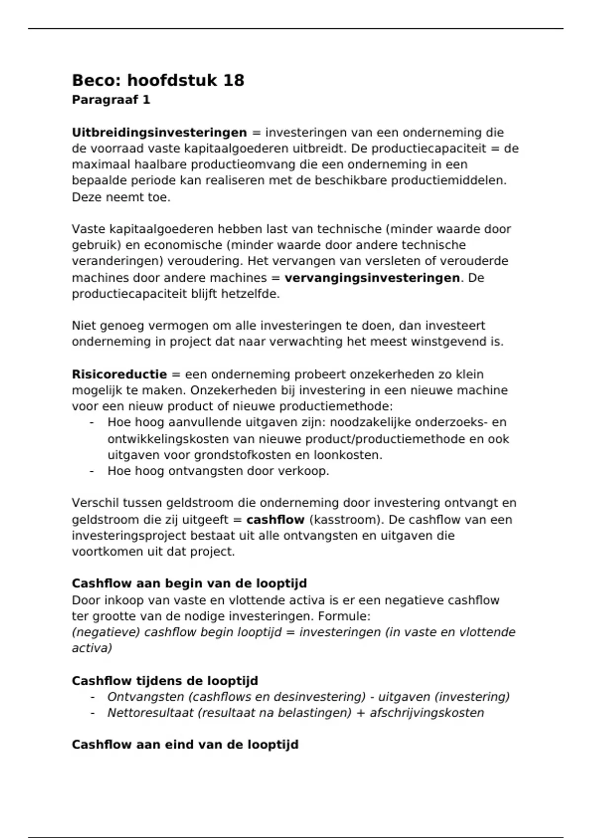 Samenvatting bedrijfseconomie hoofdstuk 18 vwo 4