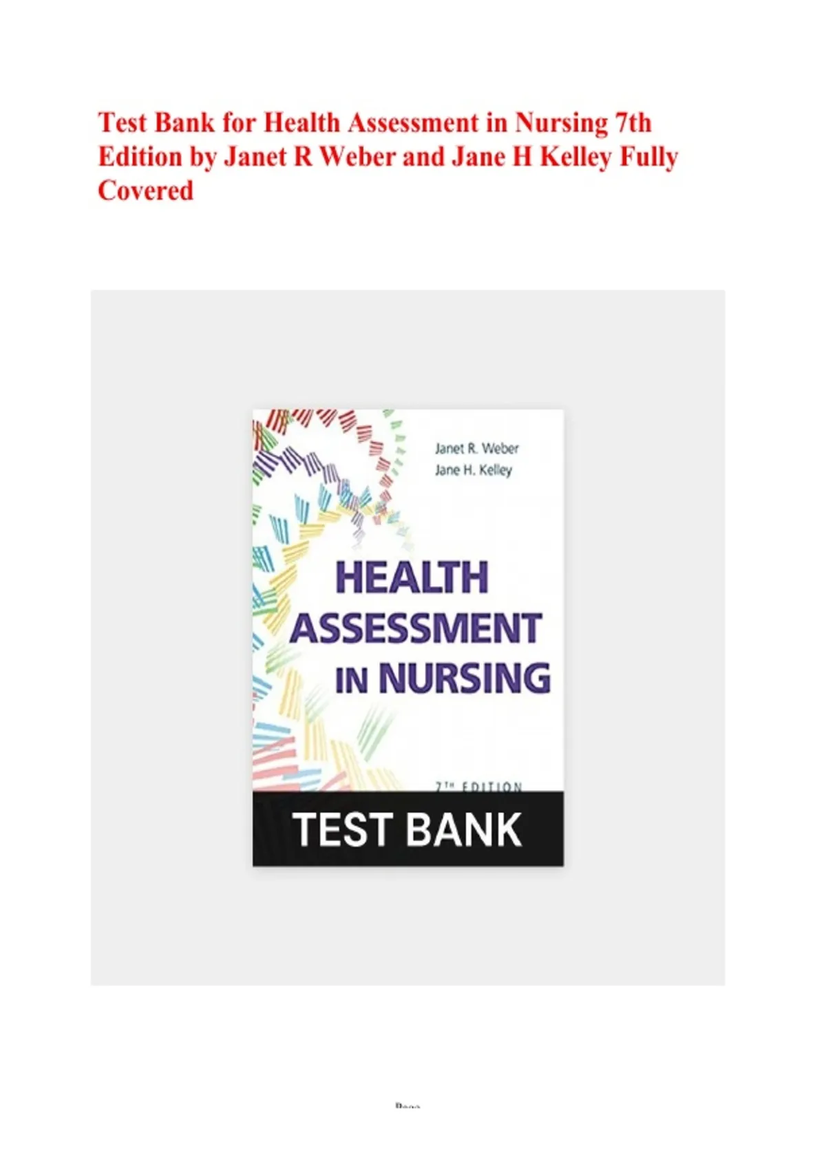 Test Bank for Health Assessment in Nursing 7th Edition Weber & Kelley | Fully Covered | NCLEX® Prep | Practice Questions & Answer Key