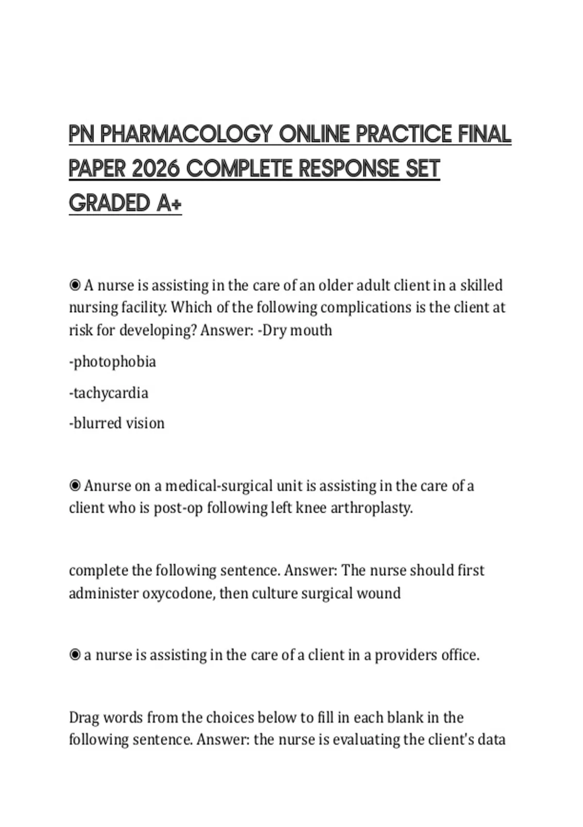 ◉ A nurse is assisting in the care of an older adult client in a skilled