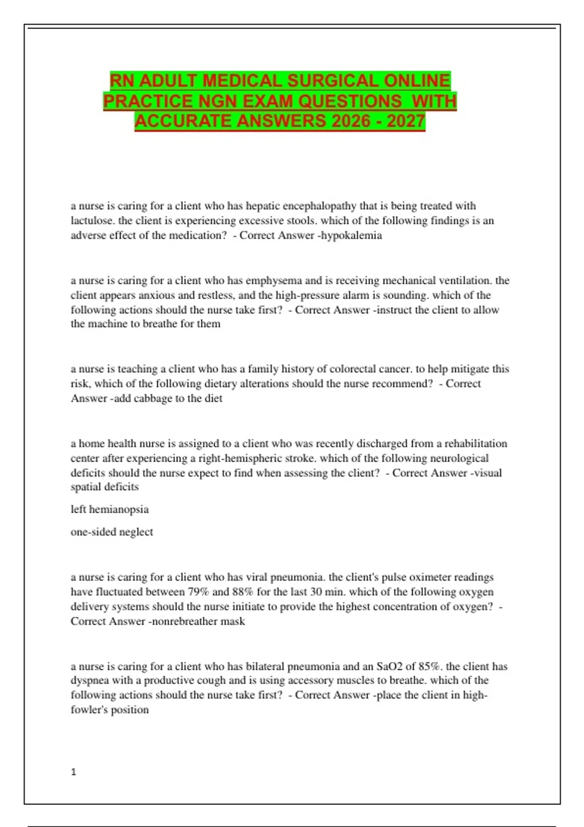 RN ADULT MEDICAL SURGICAL ONLINE PRACTICE NGN EXAM QUESTIONS WITH ACCURATE ANSWERS RN ADULT MEDICAL SURGICAL ONLINE PRACTICE NGN EXAM QUESTIONS WITH ACCURATE ANSWERS RN ADULT MEDICAL SURGICAL ONLINE PRACTICE NGN EXAM QUESTIONS WITH ACCURATE ANSWERS RN ADULT MEDICAL SURGICAL ONLINE PRACTICE NGN EXAM QUESTIONS WITH ACCURATE ANSWERS
