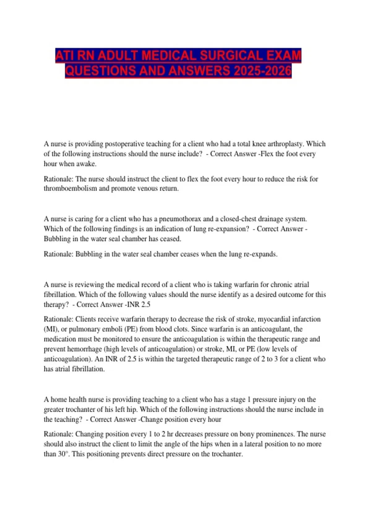 ATI RN ADULT MEDICAL SURGICAL EXAM QUESTIONS AND ANSWERS 2025ATI RN ADULT MEDICAL SURGICAL EXAM QUESTIONS AND ANSWERS 2025ATI RN ADULT MEDICAL SURGICAL EXAM QUESTIONS AND ANSWERS 2025ATI RN ADULT MEDICAL SURGICAL EXAM QUESTIONS AND ANSWERS 2025