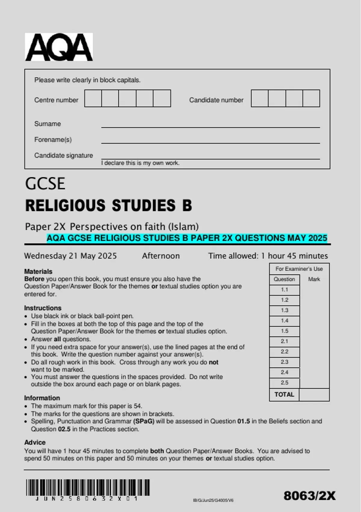 AQA GCSE RELIGIOUS STUDIES B PAPER 2X QUESTIONS MAY 2025