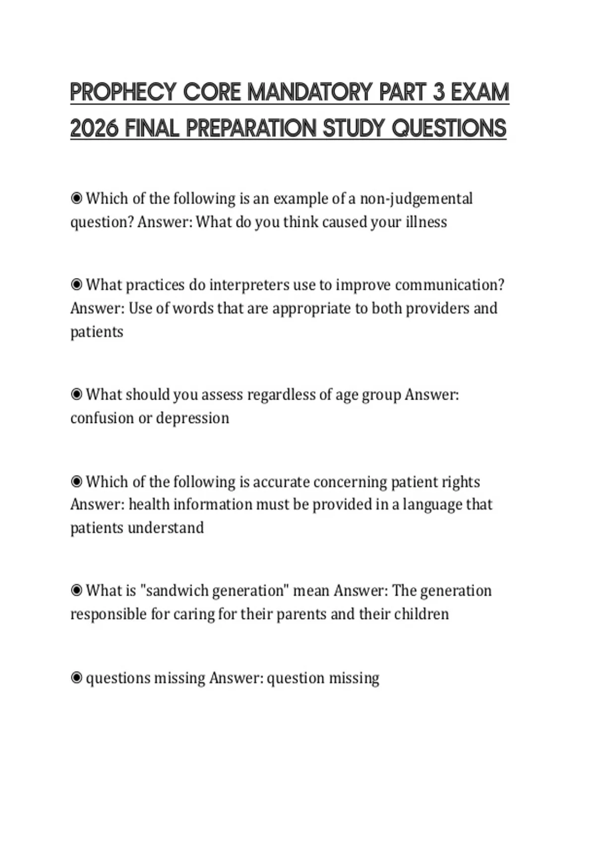 2026 FINAL PREPARATION STUDY QUESTIONS