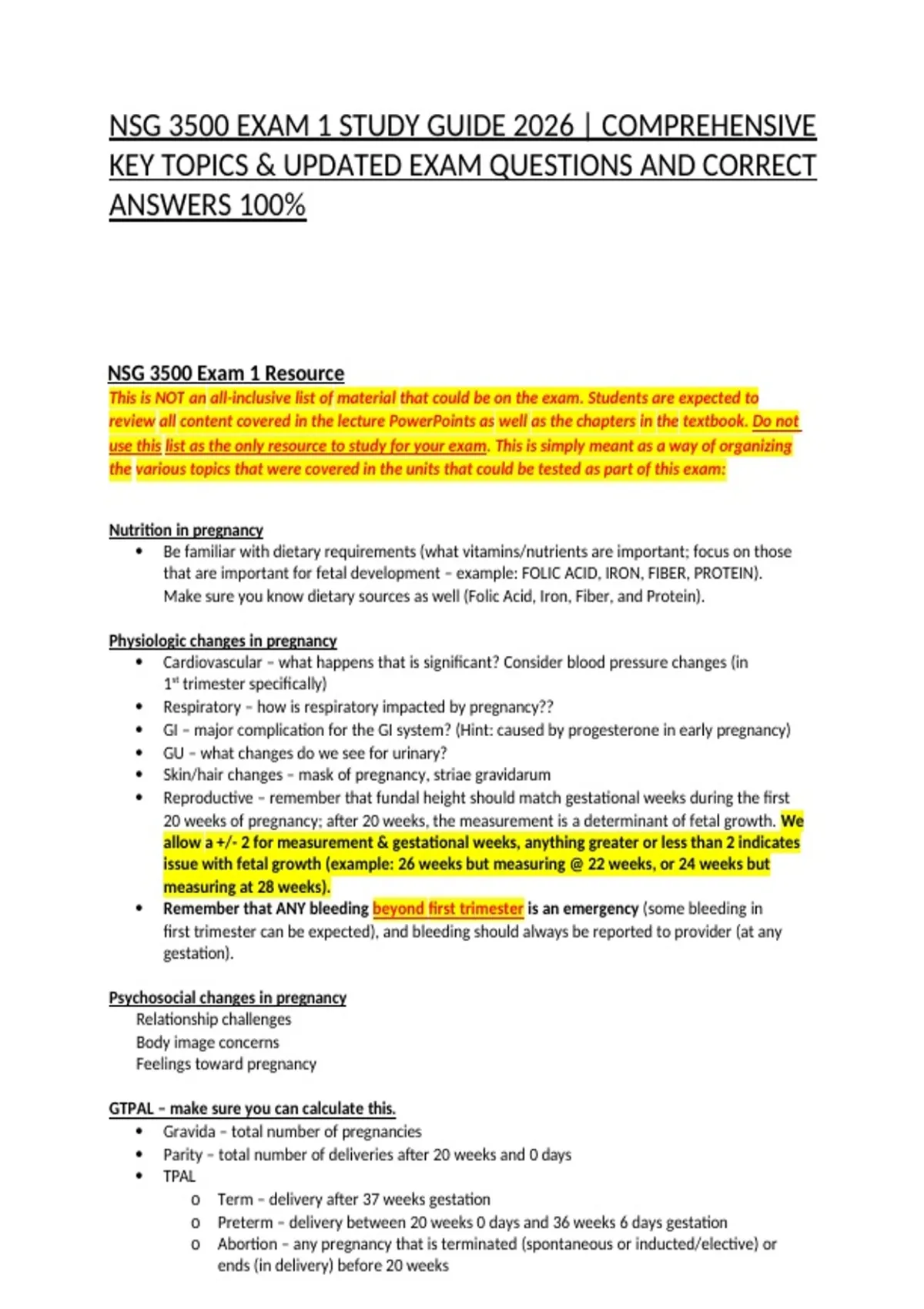 NSG 3500 EXAM 1 STUDY GUIDE 2026 | COMPREHENSIVE KEY TOPICS & UPDATED EXAM QUESTIONS AND CORRECT ANSWERS 100%