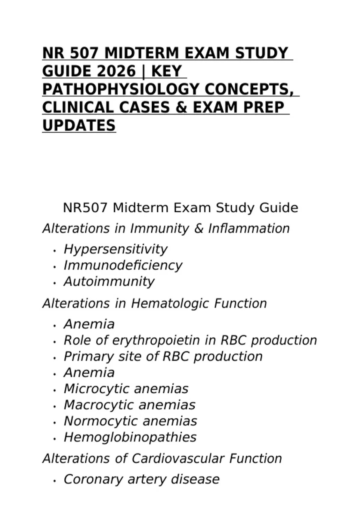 NR507 Midterm Exam Study Guide