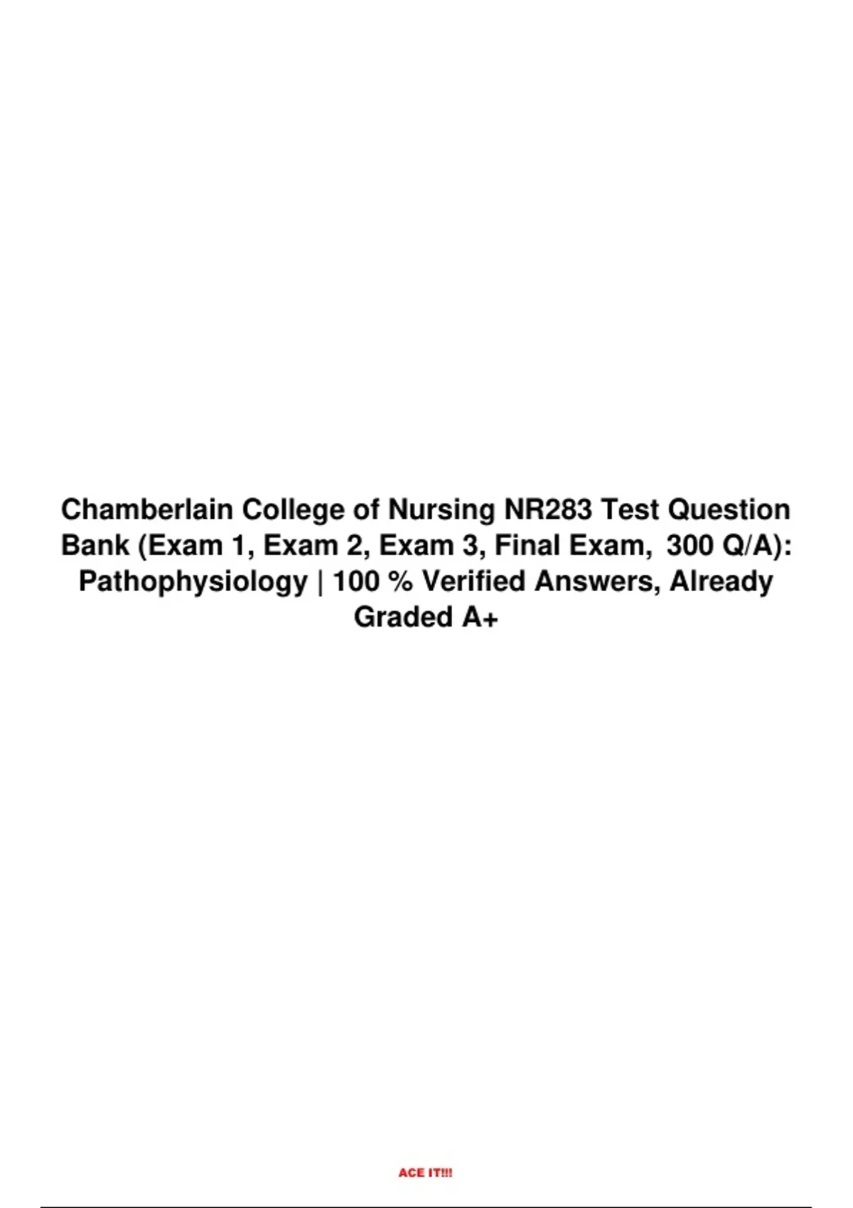,Chamberlain College of Nursing NR283 Test QuestionBank (Exam 1, Exam 2, Exam 3, Final Exam,300 Q/A):Pathophysiology | 100 % Verified Answers, Already Graded A+