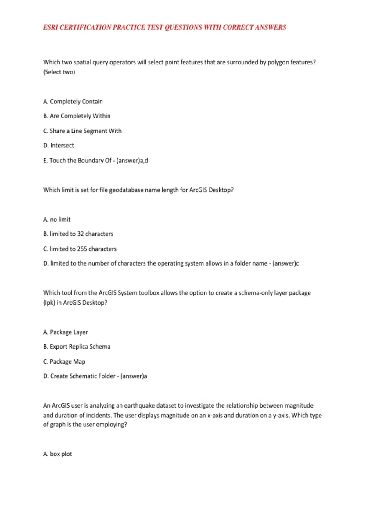 , ESRI CERTIFICATION PRACTICE TEST QUESTIONS WITH CORRECT ANSWERS