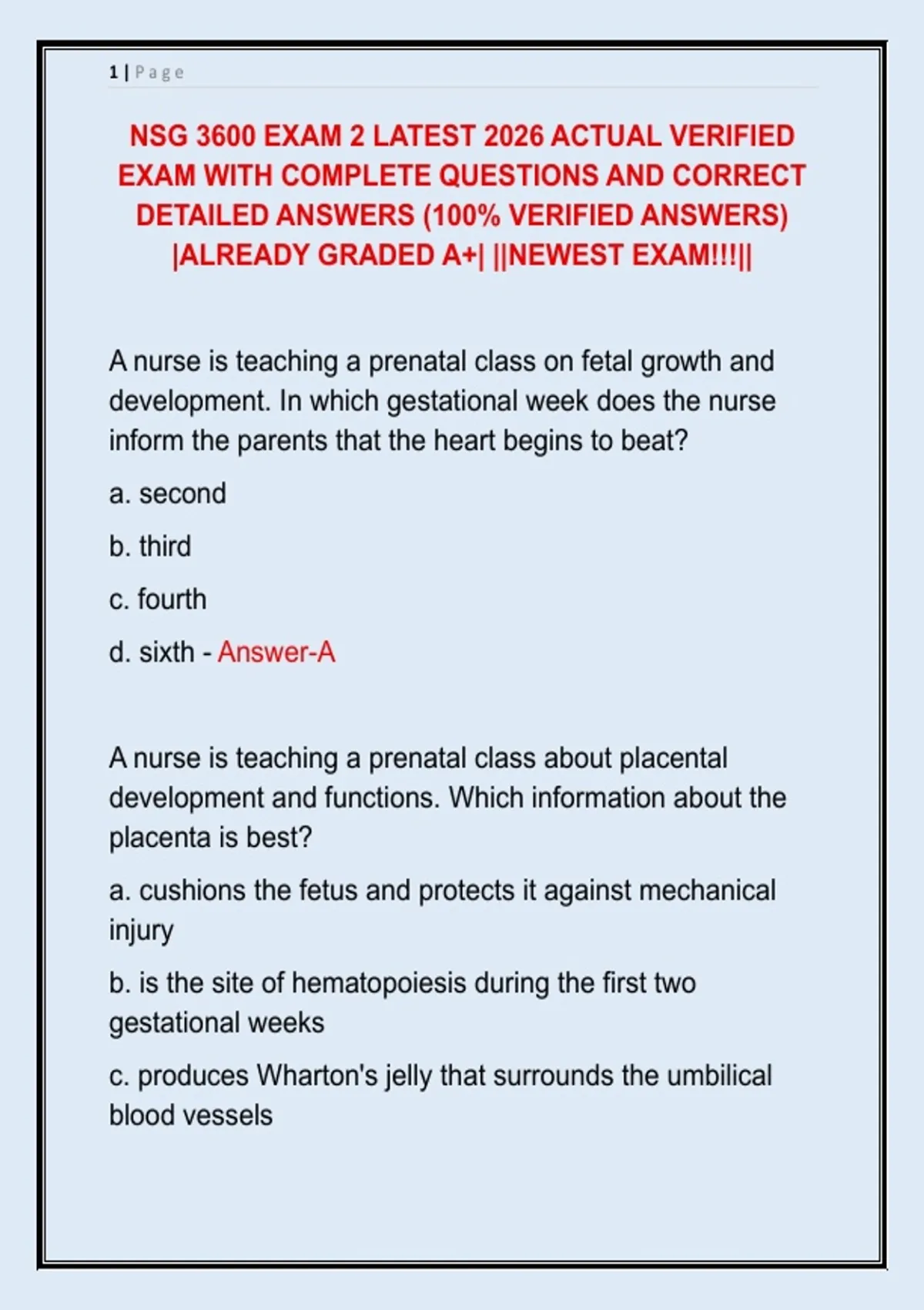 NSG 3600 EXAM 2 LATEST 2026 ACTUAL VERIFIED
