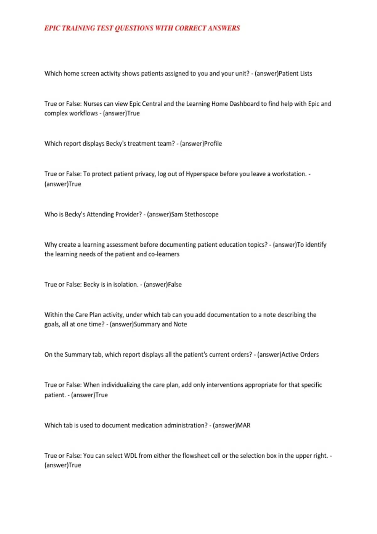 EPIC TRAINING TEST QUESTIONS WITH CORRECT ANSWERS