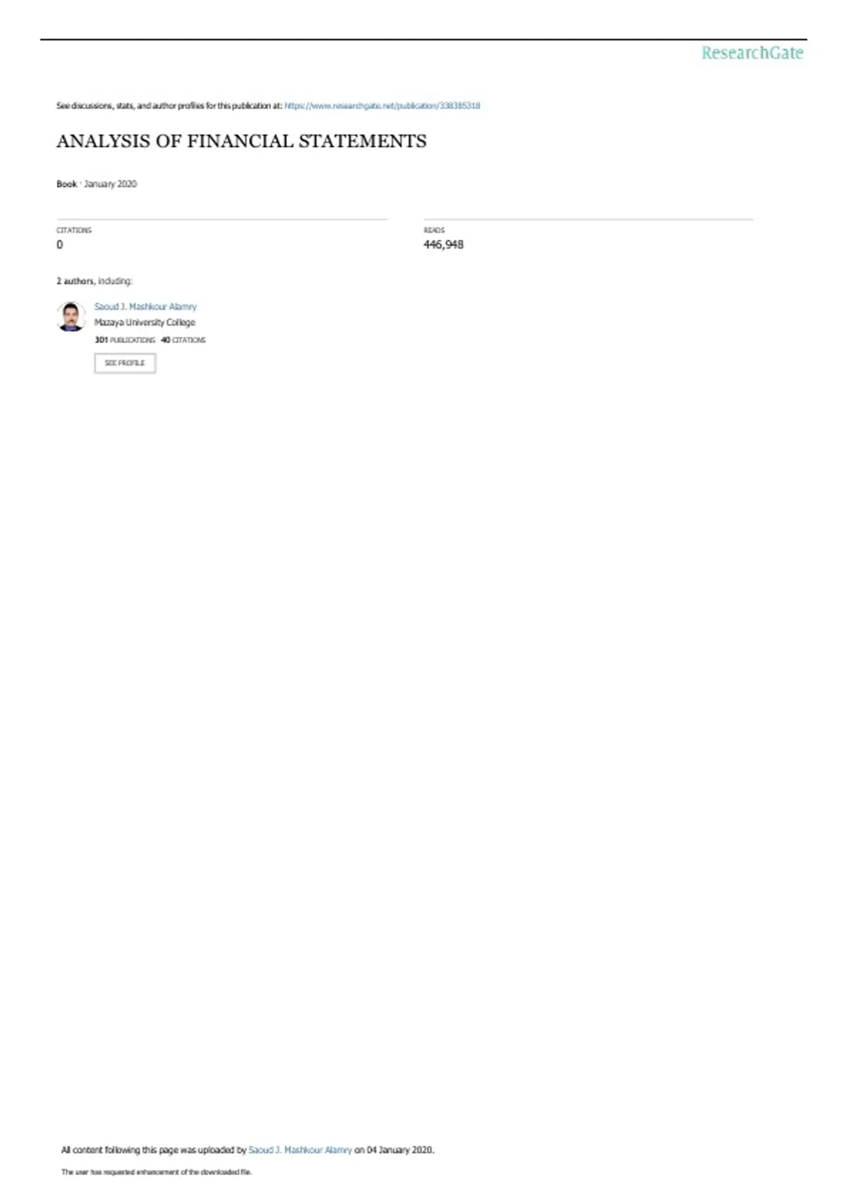 Book : Analysis of Financial تحليل القوائن الوالية:اسن الكتاب