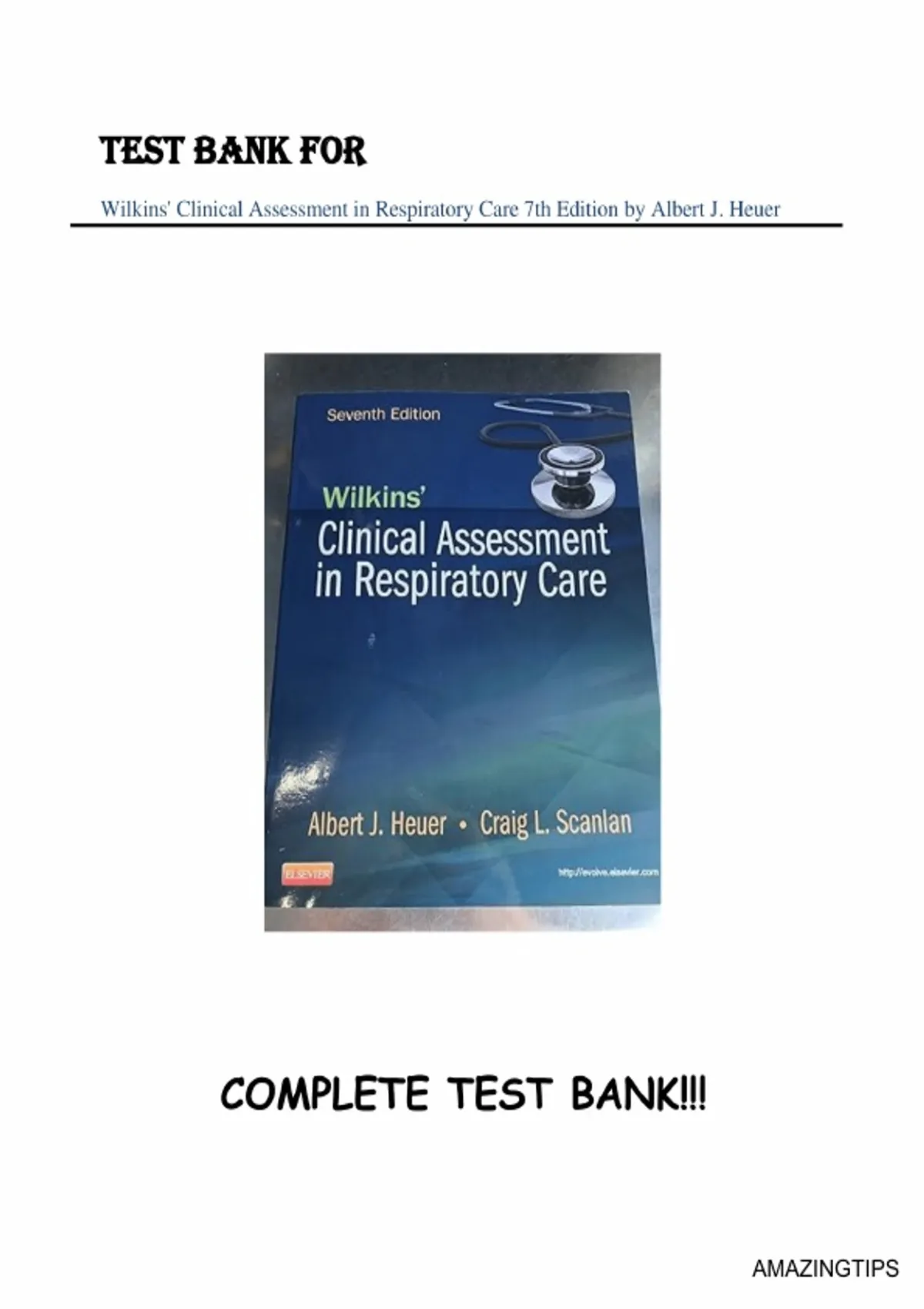 TEST BANK FOR WILKINS' CLINICAL ASSESSMENT IN RESPIRATORY CARE, 7TH EDITION BY ALBERT J. HEUER | ISBN:NO 9780323277235 | (All chapters included 1-20 | Full test bank, 100% Verified Answers)| Rationales | LATEST GUIDE A+