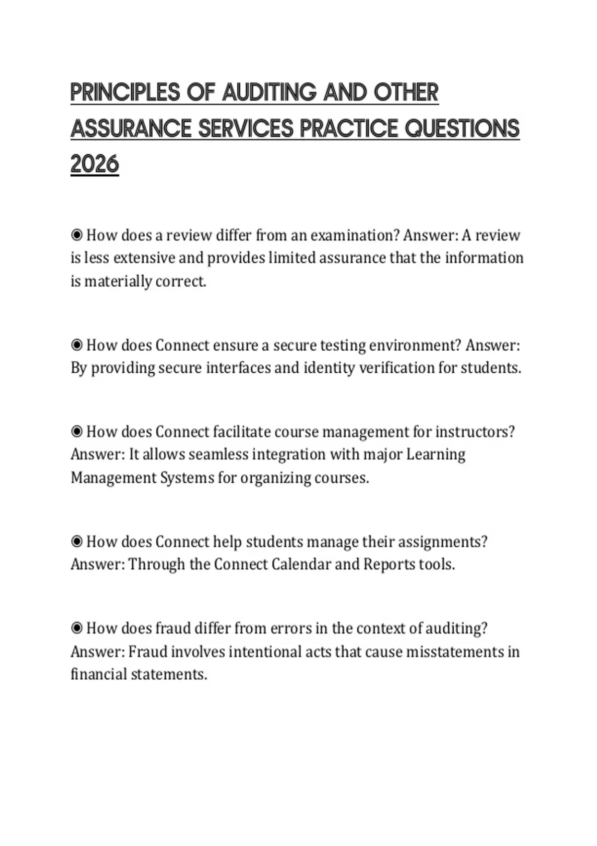 ASSURANCE SERVICES PRACTICE QUESTIONS