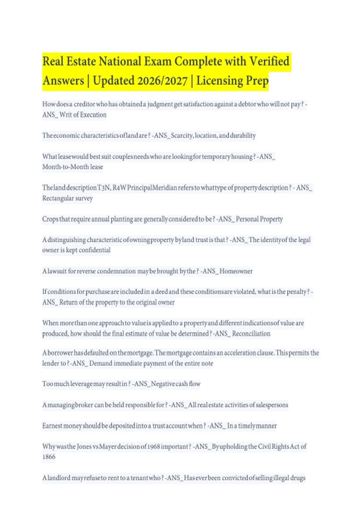 Prepare for the DC Property Manager Exam with this 2025/2026 updated actual exam simulation featuring correct solutions. Covers DC-specific landlord-tenant law, housing regulations, maintenance standards, and ethics. This realistic practice test provides the detailed solutions you need to pass your Washington DC property management licensing exam.