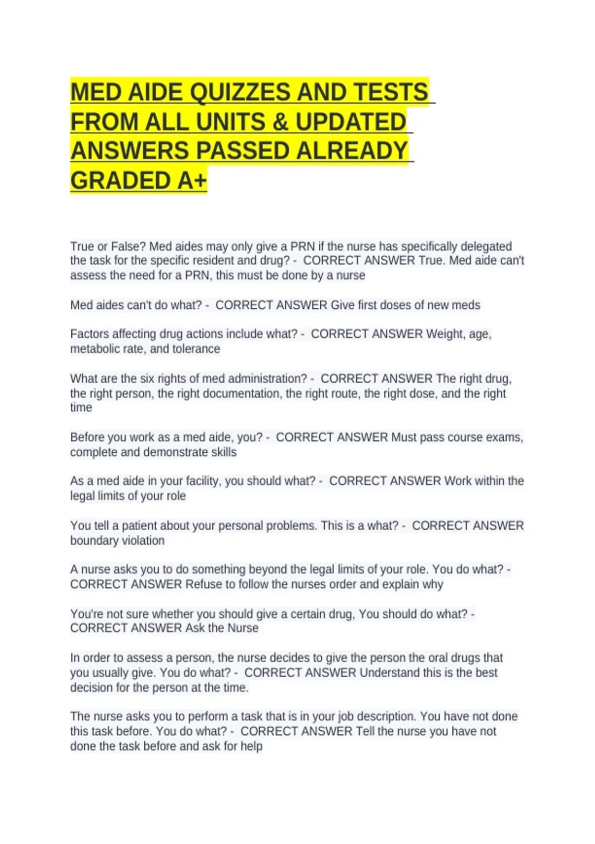 Before you work as a med aide, you? - CORRECT ANSWER Must pass course exams,