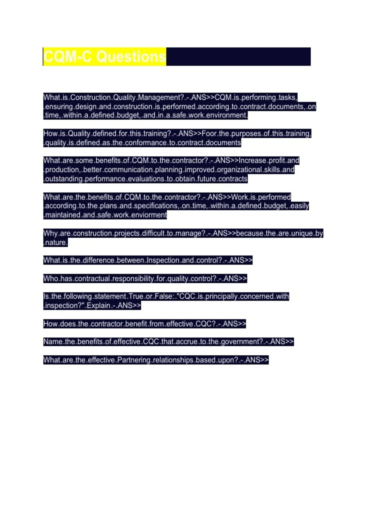 What is Construction Quality Management? - ANS>>CQM is performing tasks,