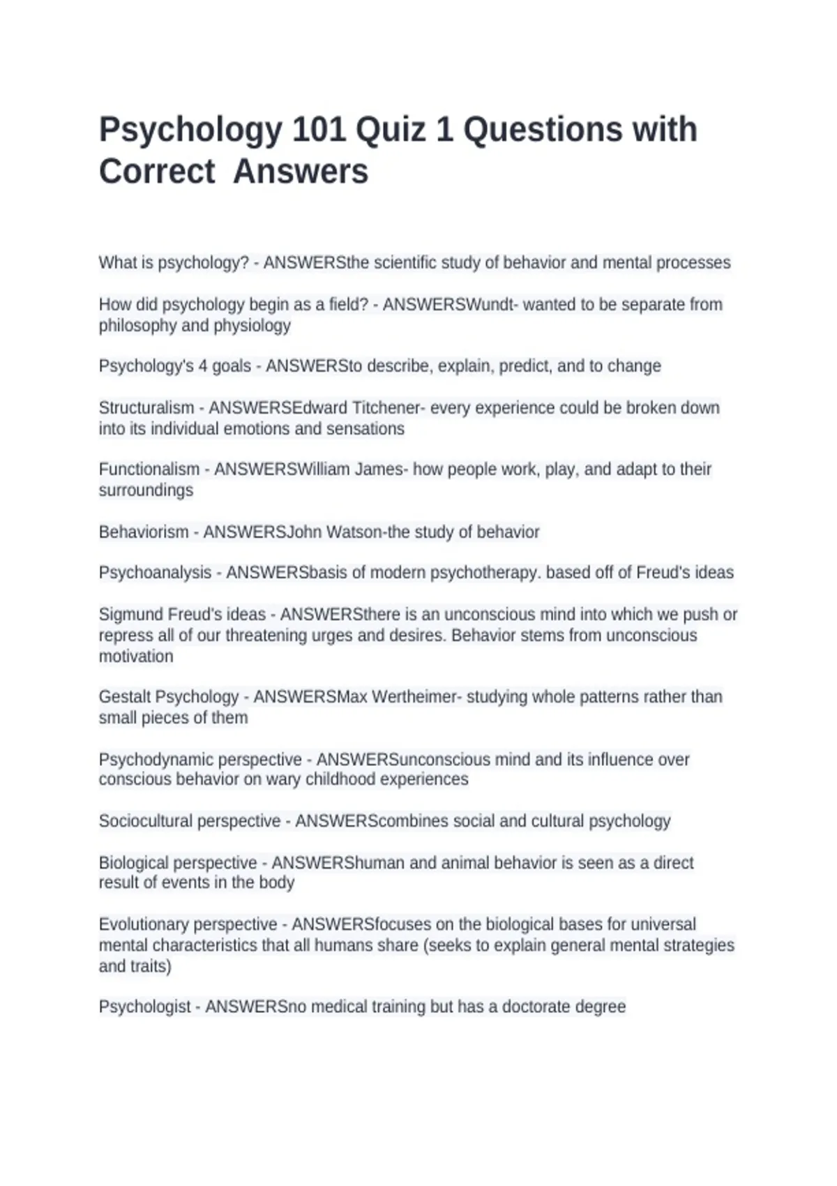 Structuralism - ANSWERSEdward Titchener- every experience could be broken down