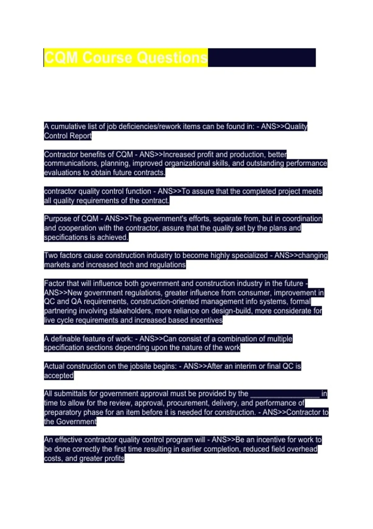 CQM Course Questions