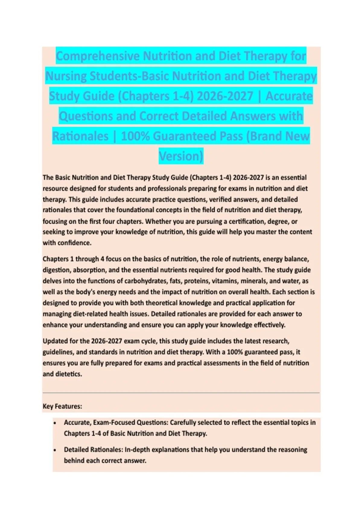guidelines, and standards in nutrition and diet therapy. With a 100% guaranteed pass, it