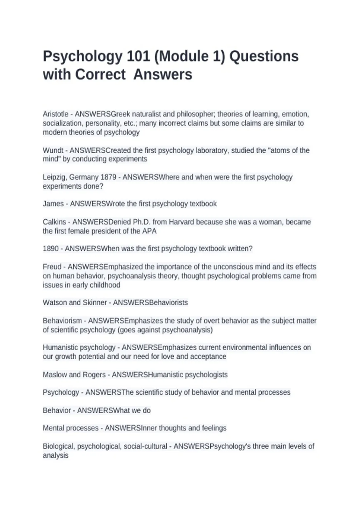 Psychology - ANSWERSThe scientific study of behavior and mental processes