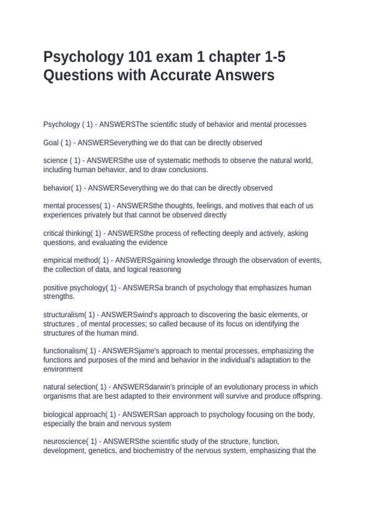 Psychology ( 1) - ANSWERSThe scientific study of behavior and mental processes