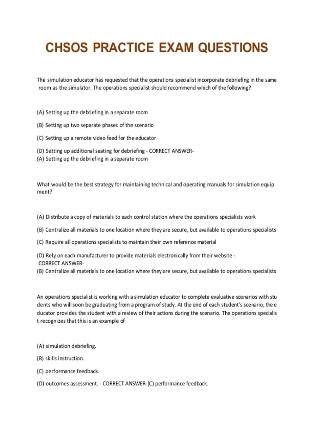 CHSOS PRACTICE EXAM QUESTIONS