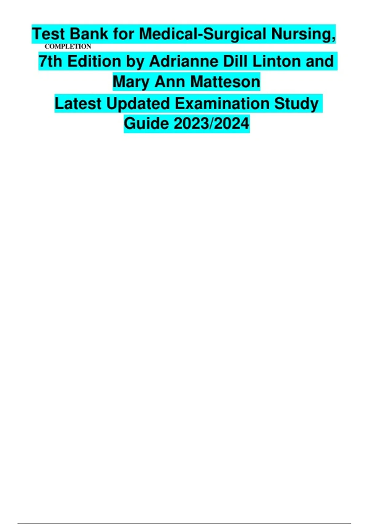 Test Bank for Medical-Surgical Nursing, 7th Edition by Adrianne Dill Linton and Mary Ann Matteson Test Bank for Medical-Surgical Nursing, 7th Edition by Adrianne Dill Linton and Mary Ann Matteson