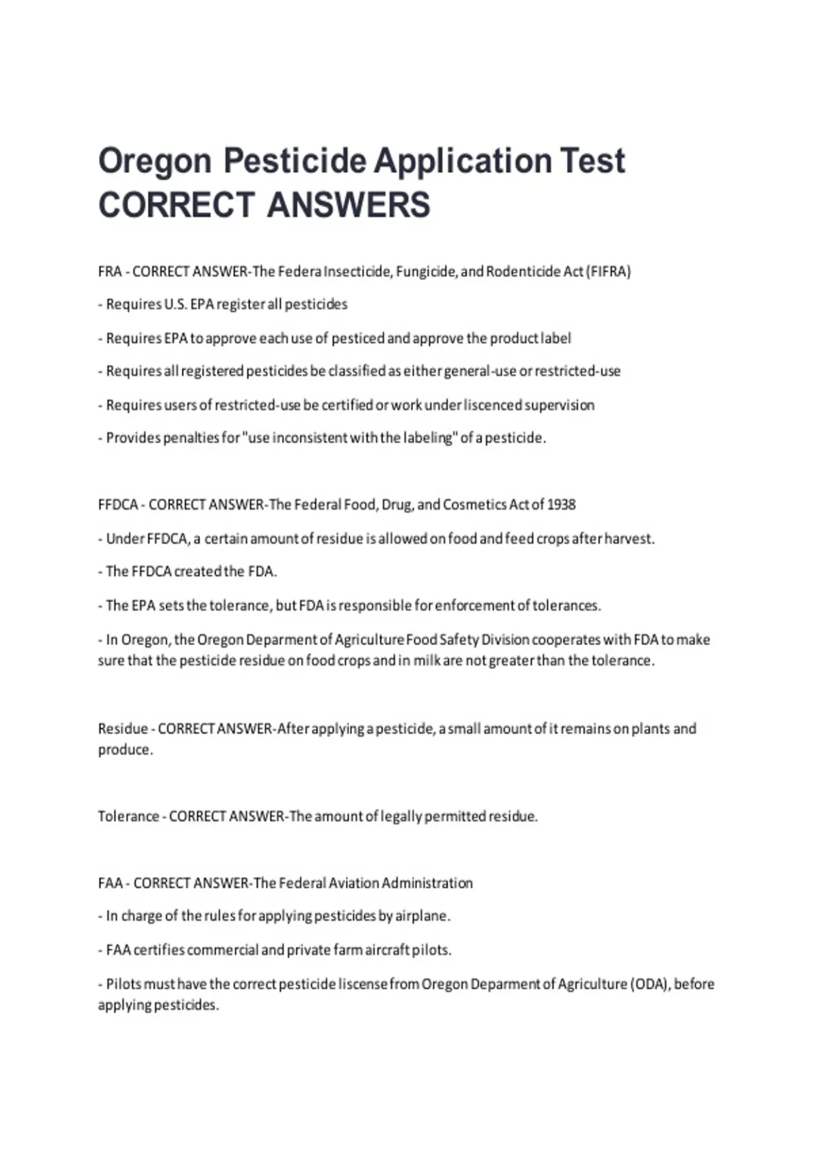 Section 3 - CORRECT ANSWER-Oregon Revised Statutes (ORS 634) and the Oregon Pesticide Regulations