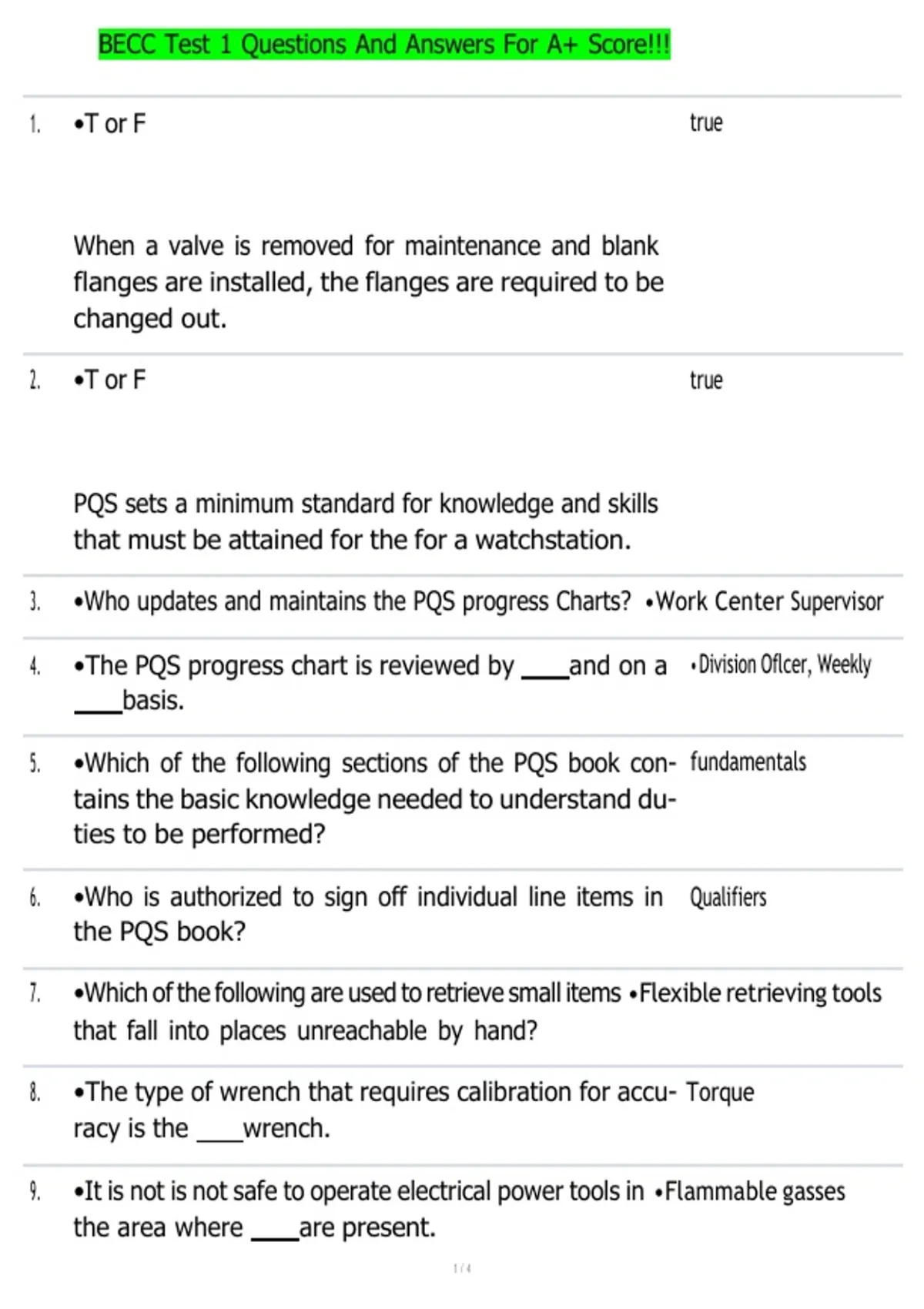 5. •Which of the following sections of the PQS book con- fundamentals