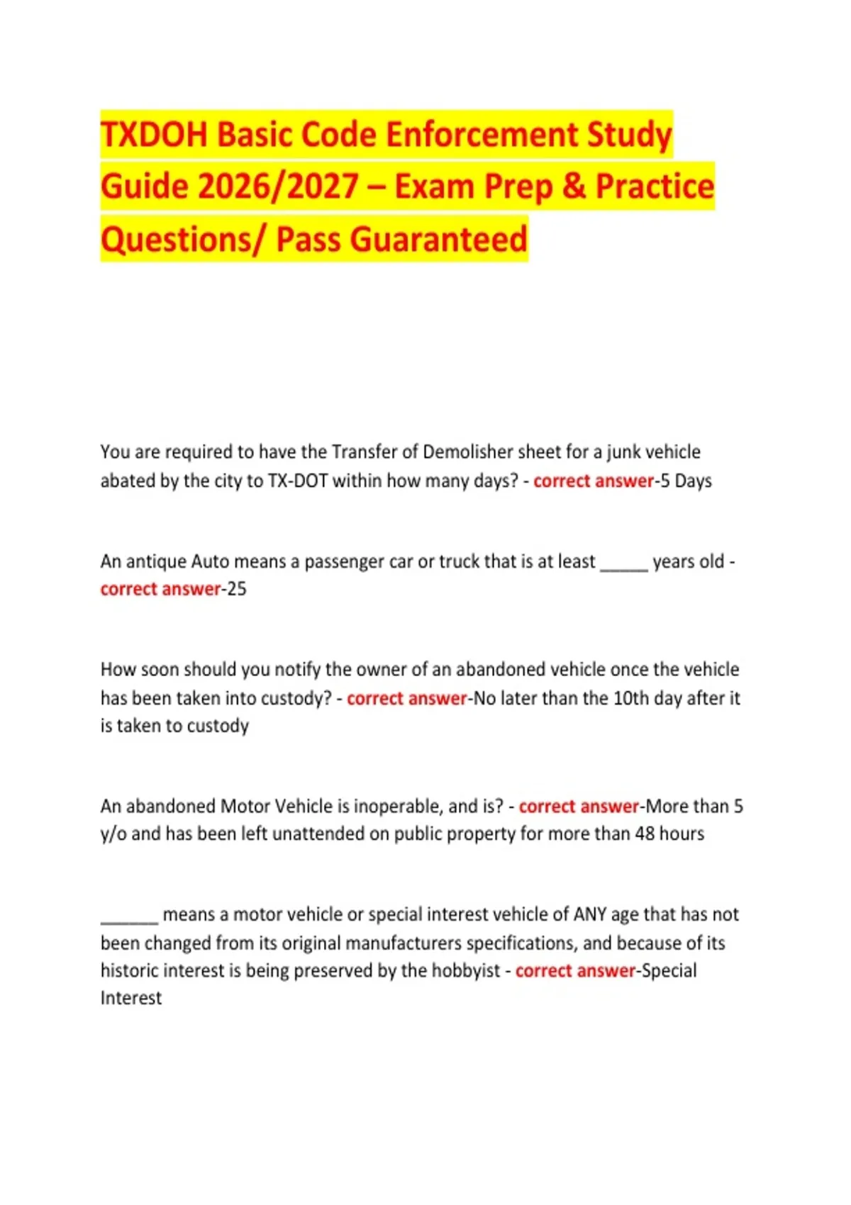 abated by the city to TX-DOT within how many days? - correct answer-5 Days