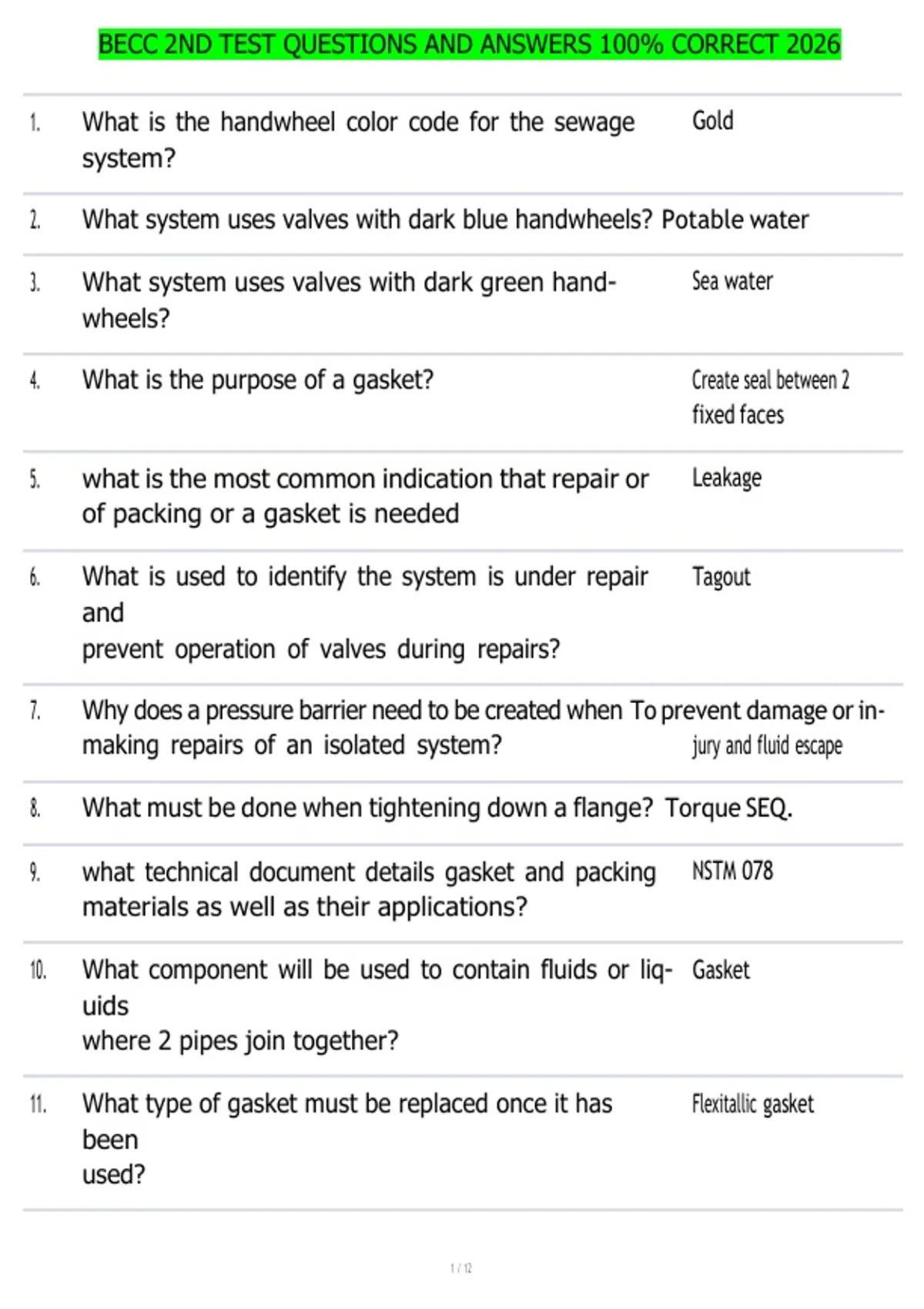 , BECC 2ND TEST QUESTIONS AND ANSWERS 100% CORRECT 2026